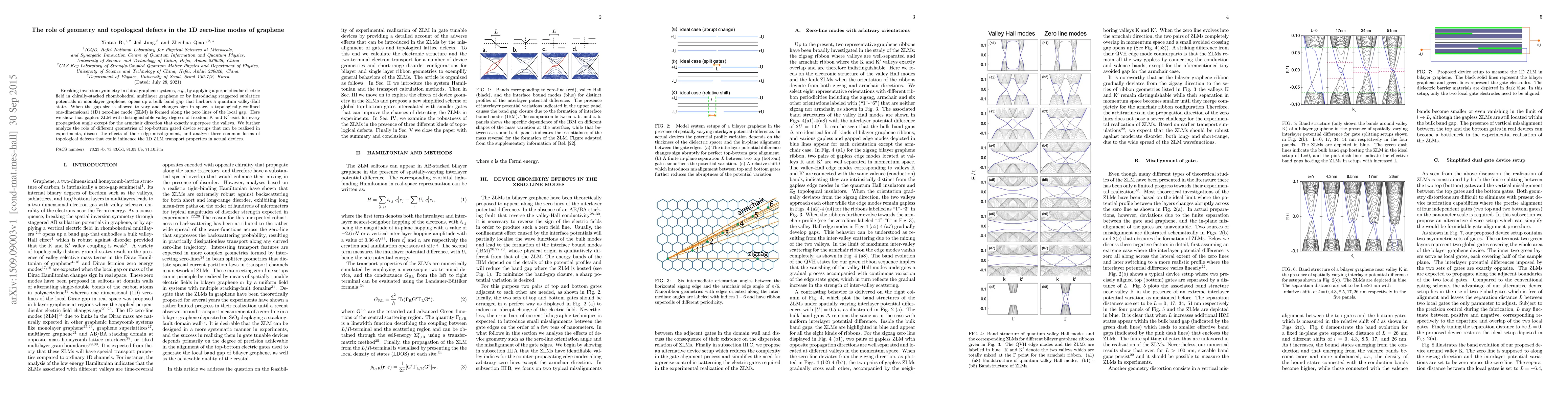 Breaking inversion symmetry in chiral graphene systems, \textit{e.g.}, by applying a perpendicular electric field in chirally-stacked rhombohedral multilayer graphene or by introducing staggered sublattice potentials in monolayer graphene, opens up a bulk band gap that harbors a quantum valley-Hall state. When the gap size is allowed to vary and changes sign in space, a topologically-confined one-dimensional (1D) zero-line mode (ZLM) is formed along the zero lines of the local gap. Here we show that gapless ZLM with distinguishable valley degrees of freedom K and K$'$ exist for every propagation angle except for the armchair direction that exactly superpose the valleys. We further analyze the role of different geometries of top-bottom gated device setups that can be realized in experiments, discuss the effects of their edge misalignment, and analyze three common forms of topological defects that could influence the 1D ZLM transport properties in actual devices.