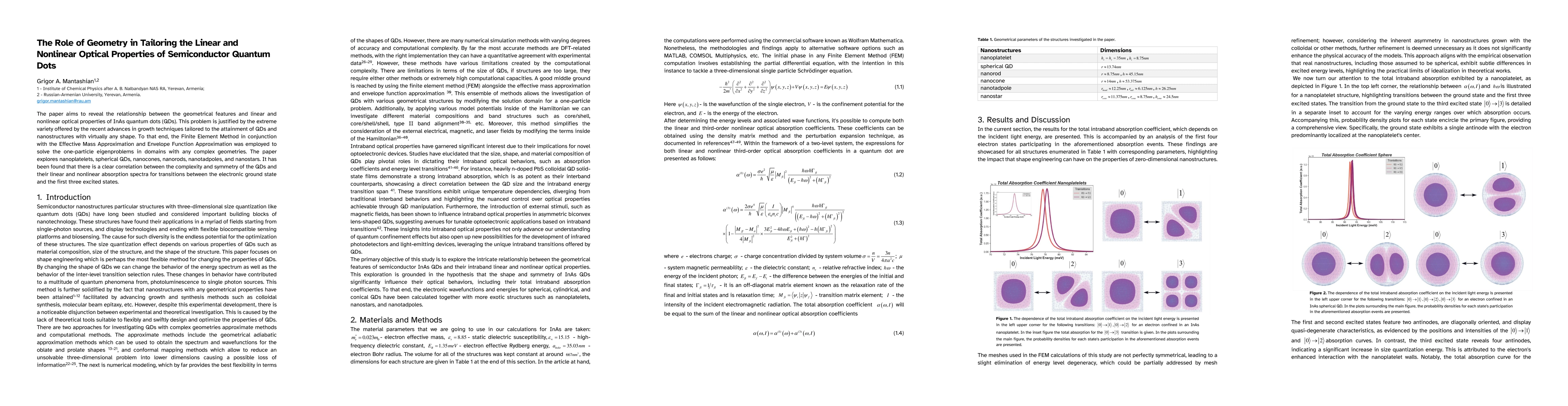 This paper investigates how geometric shapes of InAs quantum dots influence their linear and nonlinear optical properties. Using advanced computational methods, it finds a strong correlation between the complexity and symmetry of the quantum dots and their optical spectra.