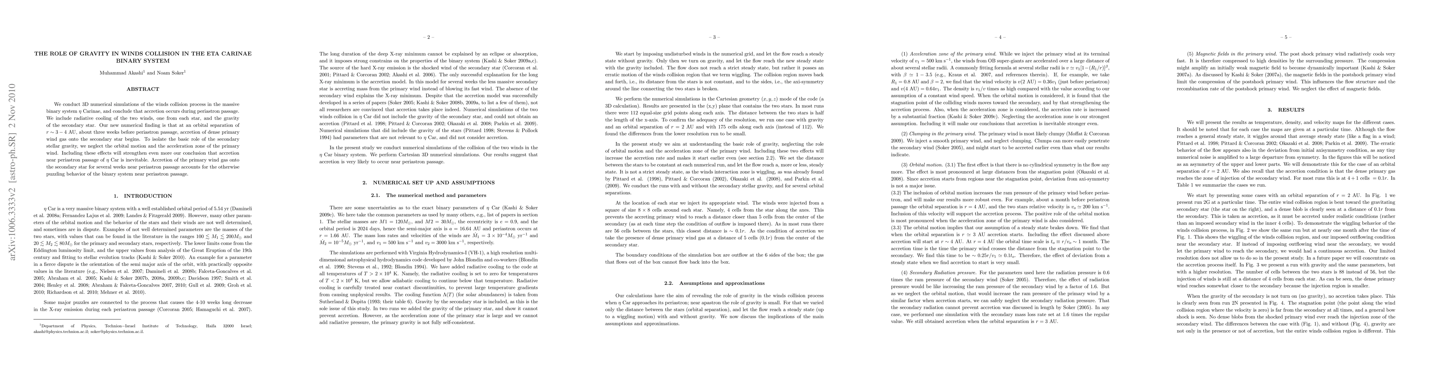 This research uses 3D simulations to show that accretion of the primary star's wind onto the secondary star occurs three weeks before periastron passage in the Eta Carinae binary system, explaining the system's unusual behavior. The study emphasizes the critical role of the secondary star's gravity in this process.