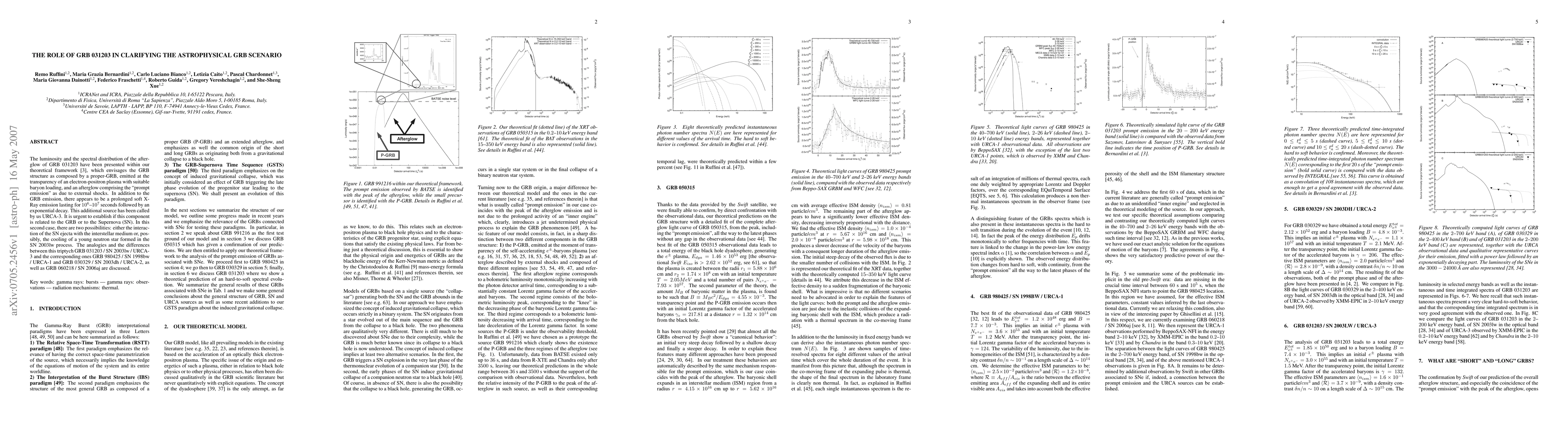 The luminosity and the spectral distribution of the afterglow of GRB 031203 have been presented within our theoretical framework, which envisages the GRB structure as composed by a proper-GRB, emitted at the transparency of an electron-positron plasma with suitable baryon loading, and an afterglow comprising the "prompt emission" as due to external shocks. In addition to the GRB emission, there appears to be a prolonged soft X-Ray emission lasting for 10^6-10^7 seconds followed by an exponential decay. This additional source has been called by us URCA-3. It is urgent to establish if this component is related to the GRB or to the Supernova (SN). In this second case, there are two possibilities: either the interaction of the SN ejecta with the interstellar medium or, possibly, the cooling of a young neutron star formed in the SN 2003lw process. The analogies and the differences between this triptych GRB 031203 / SN 2003lw / URCA-3 and the corresponding ones GRB 980425 / SN 1998bw / URCA-1 and GRB 030329 / SN 2003dh / URCA-2, as well as GRB 060218 / SN 2006aj are discussed.