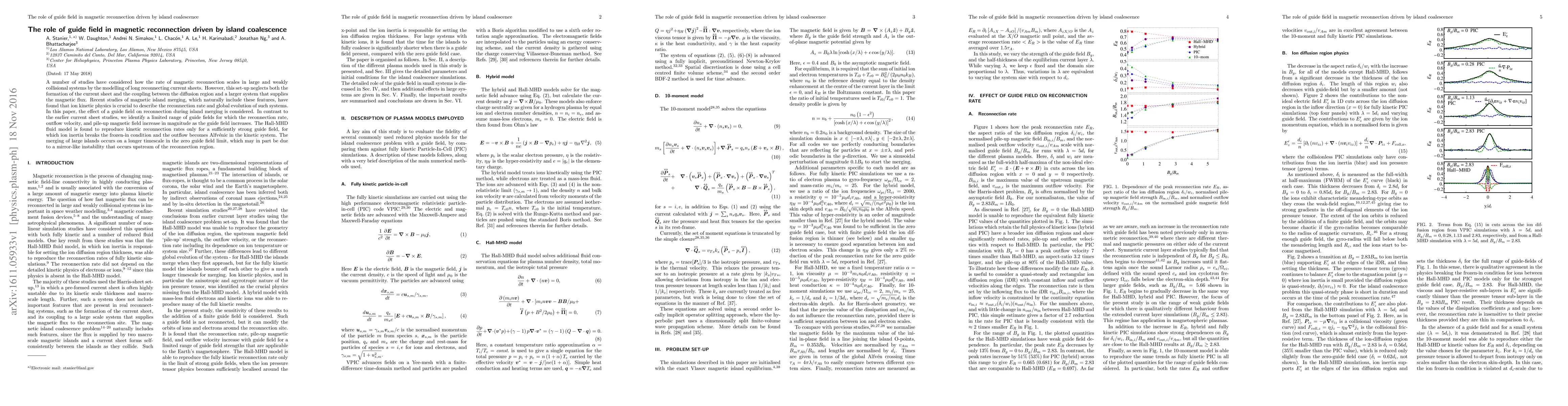 A study on magnetic reconnection in island merging found that a guide field affects reconnection rate and outflow velocity, with optimal rates at strong guide fields, while weaker fields hinder reconnection.