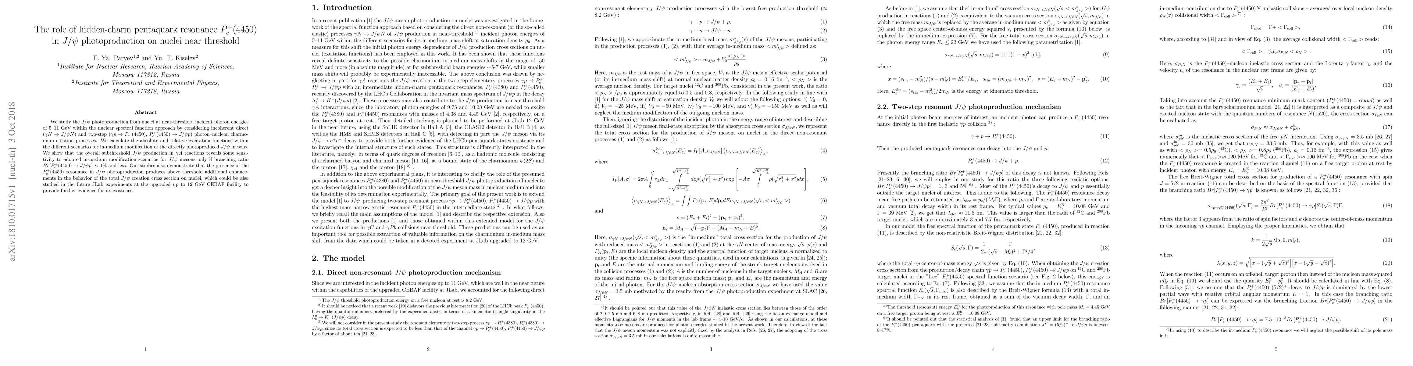 We study the $J/\psi$ photoproduction from nuclei at near-threshold incident photon energies of 5--11 GeV within the nuclear spectral function approach by considering incoherent direct (${\gamma}N \to {J/\psi}N$) and two-step (${\gamma}p \to P^+_c(4450)$, $P^+_c(4450) \to {J/\psi}p$) photon--nucleon charmonium creation processes. We calculate the absolute and relative excitation functions within the different scenarios for in-medium modification of the directly photoproduced $J/\psi$ mesons. We show that the overall subthreshold $J/\psi$ production in ${\gamma}A$ reactions reveals some sensitivity to adopted in-medium modification scenarios for $J/\psi$ mesons only if branching ratio $Br[P^+_c(4450) \to {J/\psi}p]$ $\sim$ 1% and less. Our studies also demonstrate that the presence of the $P^+_c(4450)$ resonance in $J/\psi$ photoproduction produces above threshold additional enhancements in the behavior of the total $J/\psi$ creation cross section on nuclei, which could be also studied in the future JLab experiments at the upgraded up to 12 GeV CEBAF facility to provide further evidence for its existence.