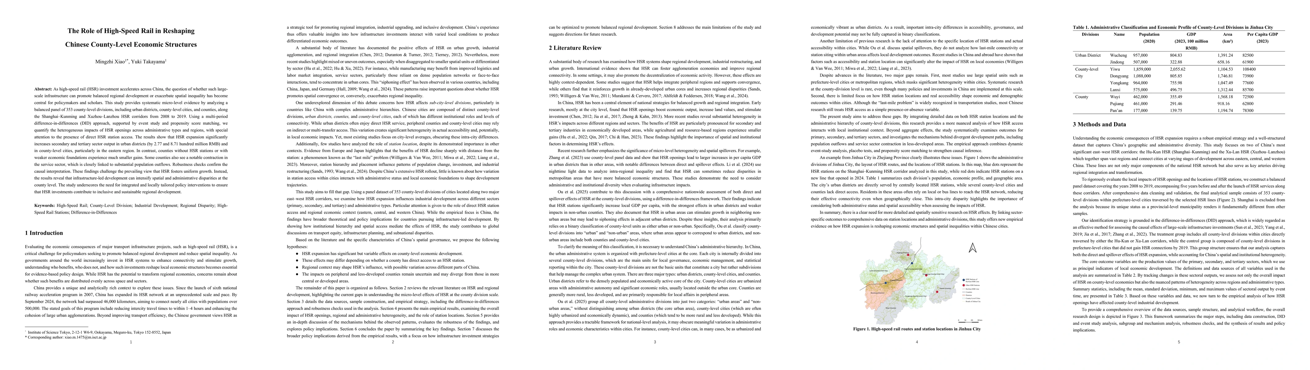 As high-speed rail (HSR) investment accelerates across China, the question of whether such large-scale infrastructure can promote balanced regional development or exacerbate spatial inequality has become central for policymakers and scholars. This study provides systematic micro-level evidence by analyzing a balanced panel of 353 county-level divisions, including urban districts, county-level cities, and counties, along the Shanghai-Kunming and Xuzhou-Lanzhou HSR corridors from 2008 to 2019. Using a multi-period difference-in-differences (DID) approach, supported by event study and propensity score matching, we quantify the heterogeneous impacts of HSR openings across administrative types and regions, with special attention to the presence of direct HSR station access. The results show that HSR expansion significantly increases secondary and tertiary sector output in urban districts (by 2.77 and 8.71 hundred million RMB) and in county-level cities, particularly in the eastern region. In contrast, counties without HSR stations or with weaker economic foundations experience much smaller gains. Some counties also see a notable contraction in the service sector, which is closely linked to substantial population outflows. Robustness checks confirm the causal interpretation. These findings challenge the prevailing view that HSR fosters uniform growth. Instead, the results reveal that infrastructure-led development can intensify spatial and administrative disparities at the county level. The study underscores the need for integrated and locally tailored policy interventions to ensure that HSR investments contribute to inclusive and sustainable regional development.