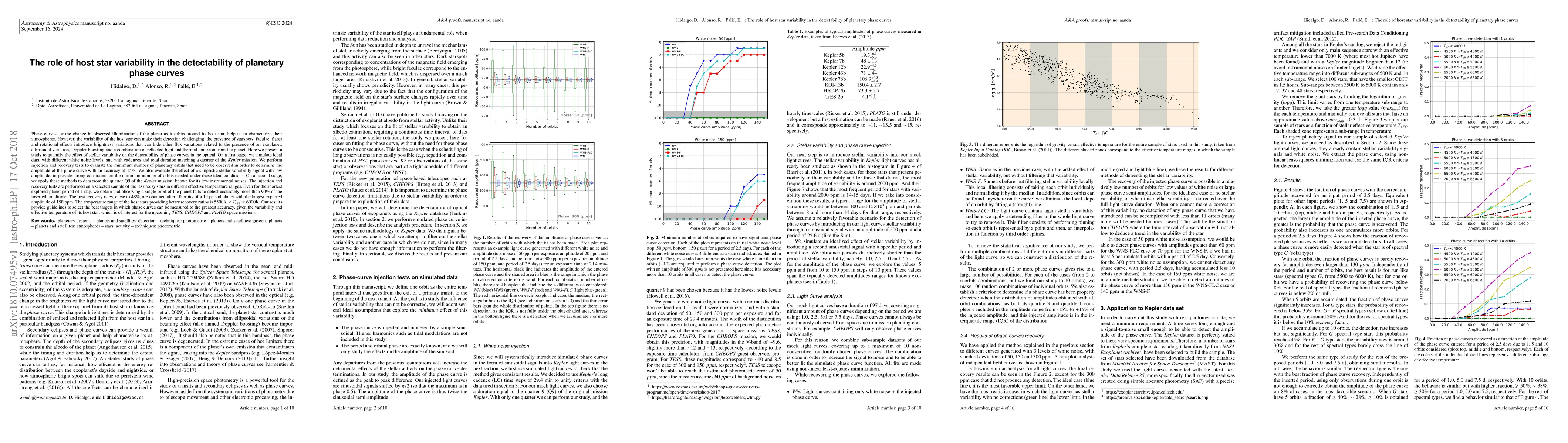 The study investigates how host star variability affects the detectability of planetary phase curves in the optical, finding that even a single orbit observation fails to detect accurately more than 90% of inserted amplitudes, but 10 orbits with shorter periods can achieve recovery rates close to 48%.