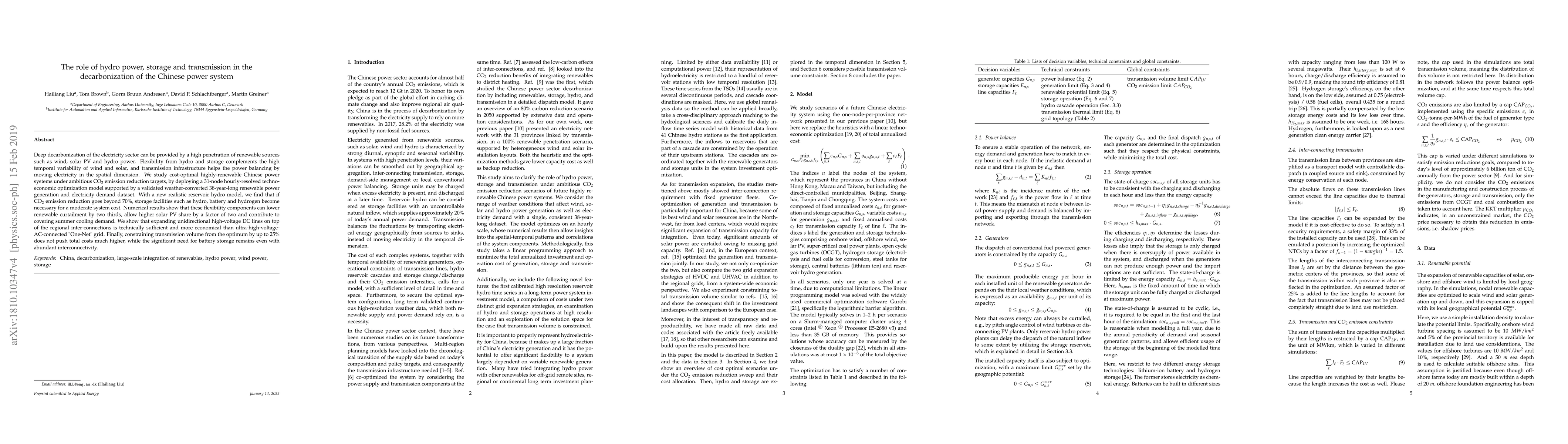 This paper explores the optimal integration of hydro power, storage, and transmission in achieving deep decarbonization of China's power system, finding that flexibility components are essential beyond 70% CO$_2$ emission reduction to minimize curtailment and enhance solar PV usage. It concludes that expanding high-voltage DC lines is more economical than ultra-high-voltage AC grids for interconnectivity.