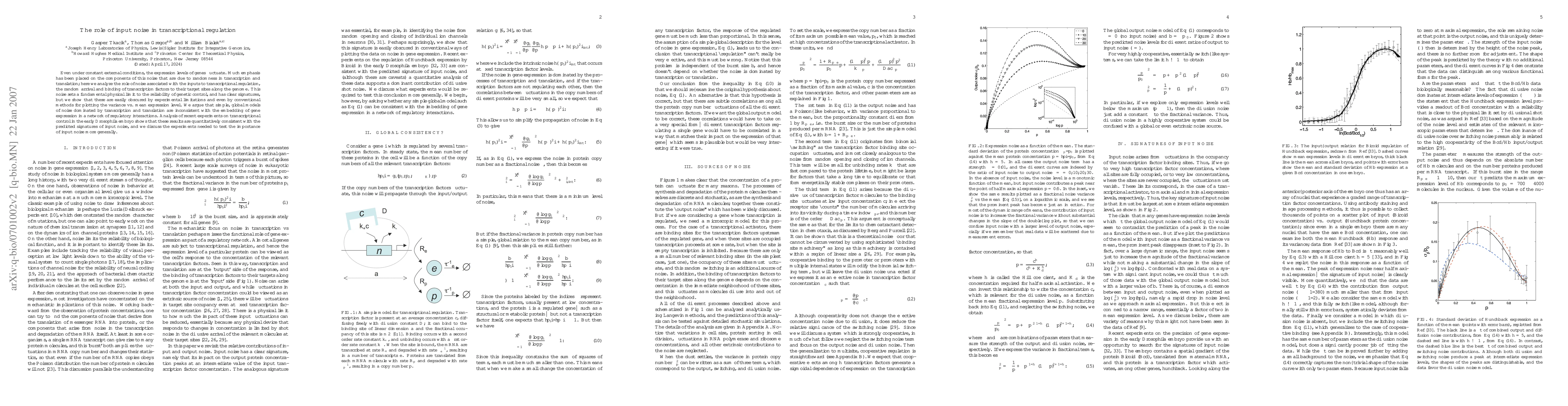 This paper investigates the impact of input noise from transcription factor binding on gene expression variability, arguing that this noise imposes a fundamental limit on genetic control. It highlights the discrepancies between simple models and complex regulatory networks, and supports its findings with experiments from early Drosophila embryo development.