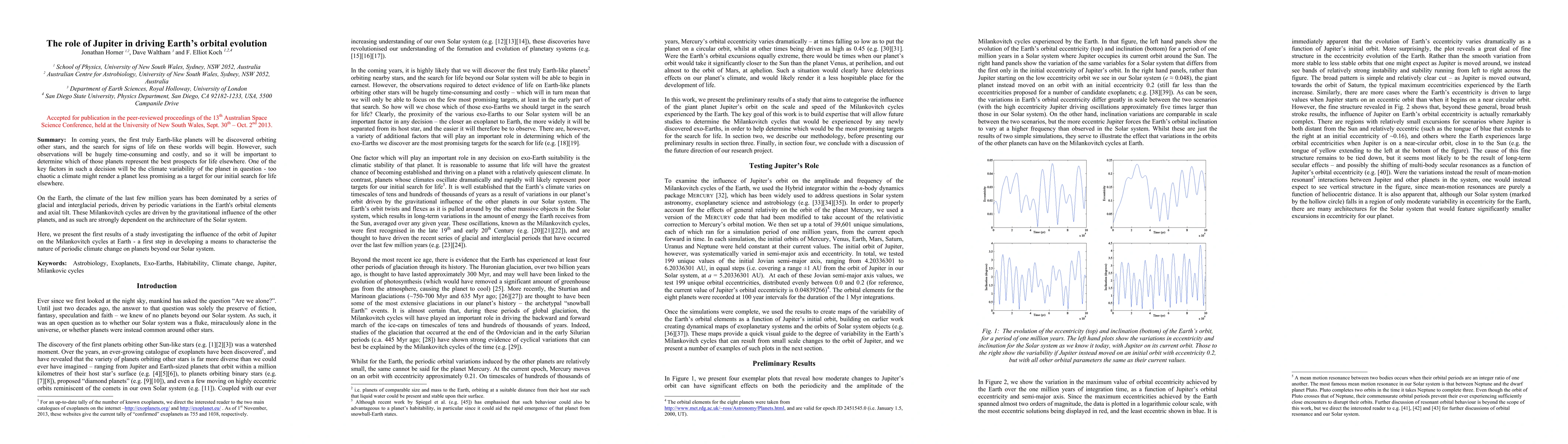 This paper investigates how Jupiter's orbit influences Earth's Milankovitch cycles, which drive glacial and interglacial periods, to understand the role of Jupiter in Earth's climate variability. The findings aim to inform the search for habitable exoplanets by assessing the stability of their climates.