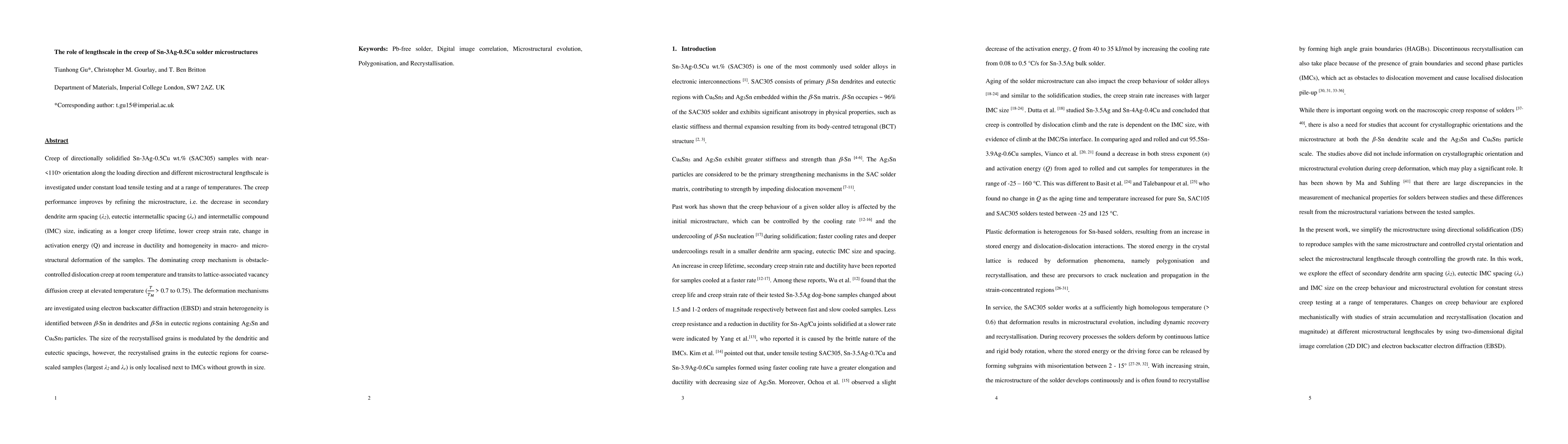 This study investigates how refining a solder microstructure improves its creep performance, with shorter spacings leading to longer lifetimes and increased ductility.
