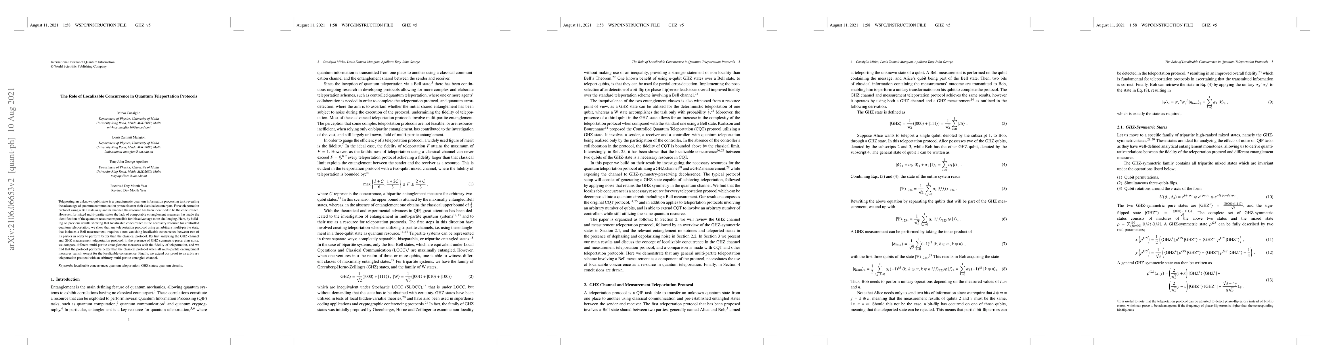 This paper demonstrates that localizable concurrence is essential for quantum teleportation protocols to outperform classical counterparts, particularly in multi-partite states. It shows that any protocol involving a Bell measurement requires non-vanishing localizable concurrence between two parties to achieve better results than classical methods.