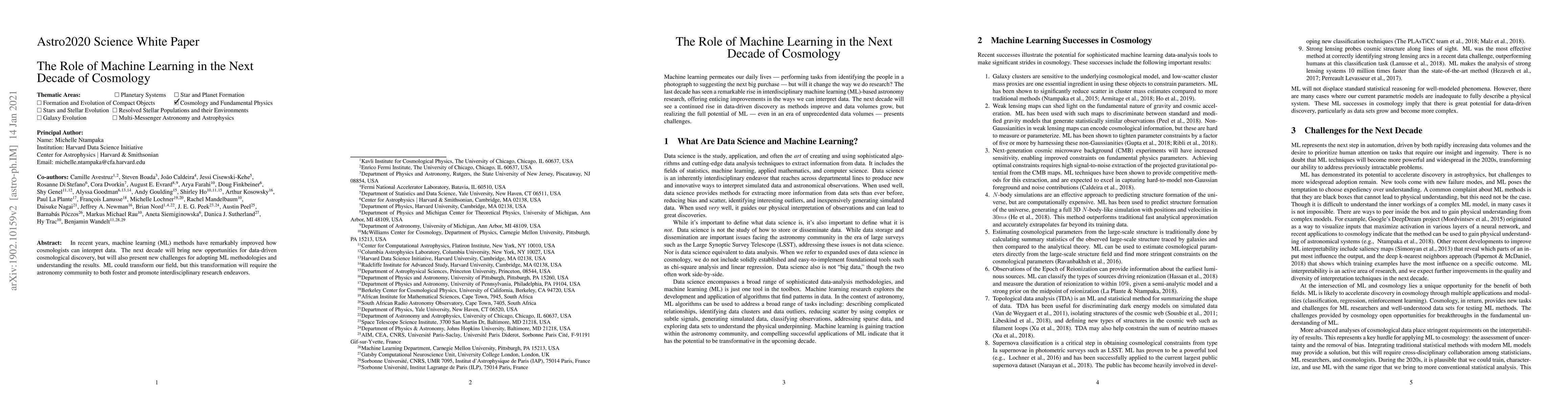 Summary: Machine learning is revolutionizing cosmology by enhancing data interpretation, but the next decade will challenge the astronomy community to adopt these methods and foster interdisciplinary research to fully realize their transformative potential.