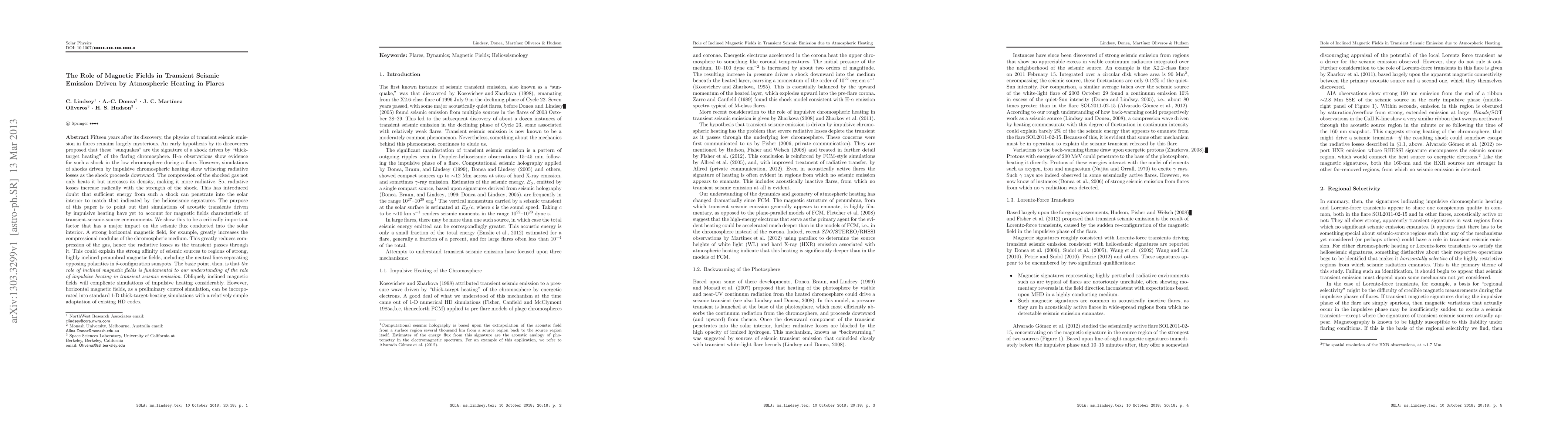 The physics of transient seismic emission in flares remains largely mysterious. Its discoverers proposed that these "sunquakes" are the signature of a shock driven by "thick-target heating" of the flaring chromosphere. H-{\alpha} observations show evidence for such a shock. However, simulations of shocks driven by impulsive chromospheric heating show withering radiative losses as the shock proceeds downward. The compression of the shocked gas heats and increases its density, making it more radiative. So, radiative losses increase radically with the strength of the shock. This has introduced doubt that sufficient energy from such a shock can penetrate into the solar interior to match that indicated by the helioseismic signatures. We point out that simulations of acoustic transients driven by impulsive heating have no account for magnetic fields characteristic of transient-seismic-source environments. These must have a major impact on the seismic flux conducted into the solar interior. A strong horizontal magnetic field, for example, greatly increases the compressional modulus of the chromospheric medium. This greatly reduces compression of the gas, hence the radiative losses as the transient passes through it. This could explain the strong affinity of seismic sources to regions of strong, highly inclined penumbral magnetic fields. The role of inclined magnetic fields, then, is fundamental to our understanding of the role of impulsive heating in transient seismic emission.
