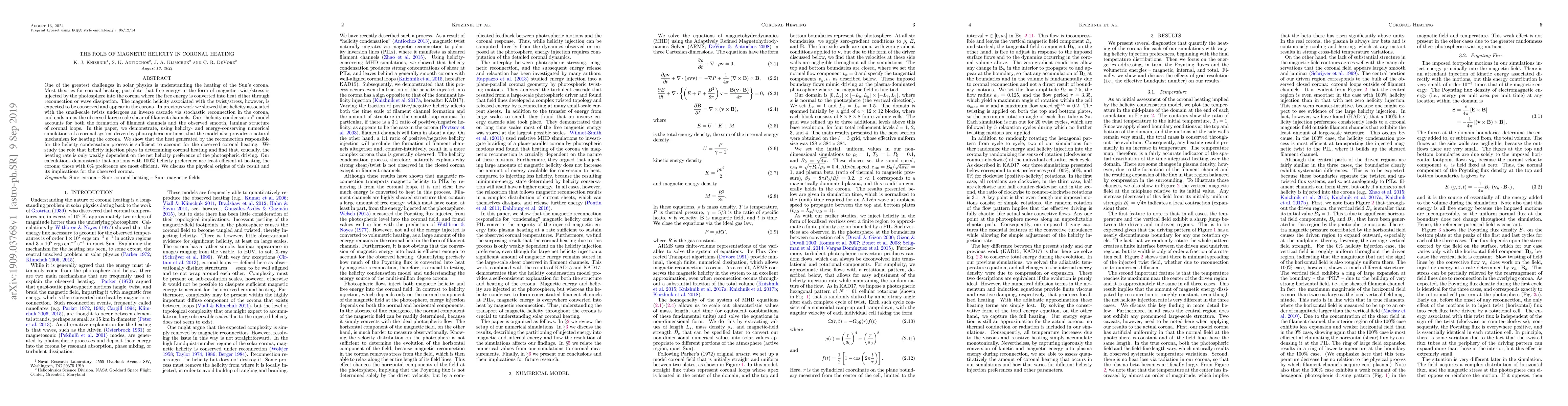 The paper presents a detailed numerical model incorporating magnetic helicity conservation and energy conservation to explain coronal heating through reconnection processes.