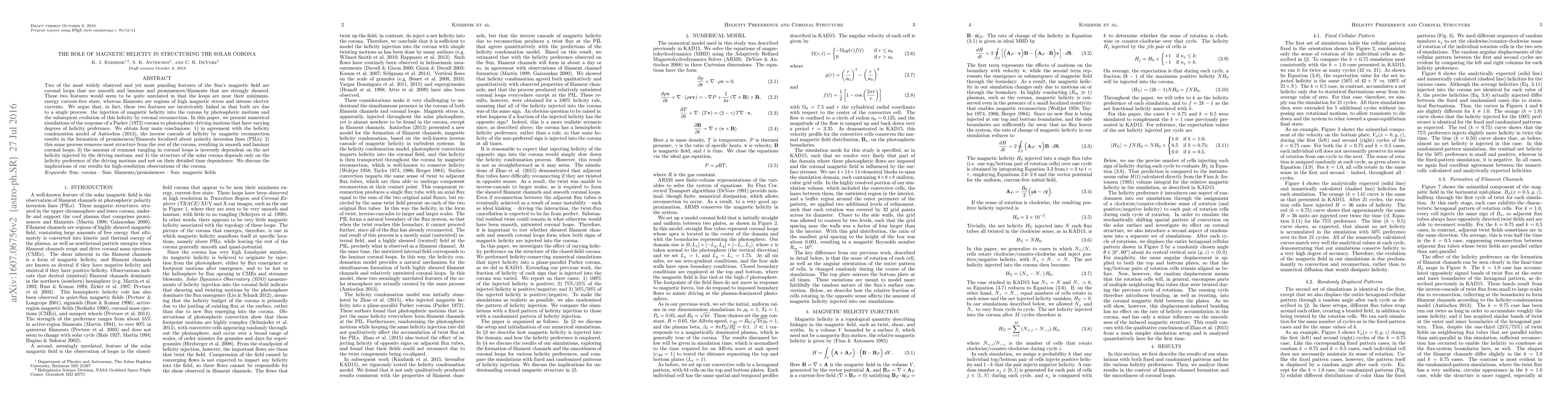 This paper explores the role of magnetic helicity in shaping the solar corona's features, demonstrating through simulations that both smooth coronal loops and sheared prominences/filaments arise from the injection and evolution of magnetic helicity by photospheric motions. The study concludes that the corona's structure is primarily determined by the helicity preference of these motions, not their temporal details.