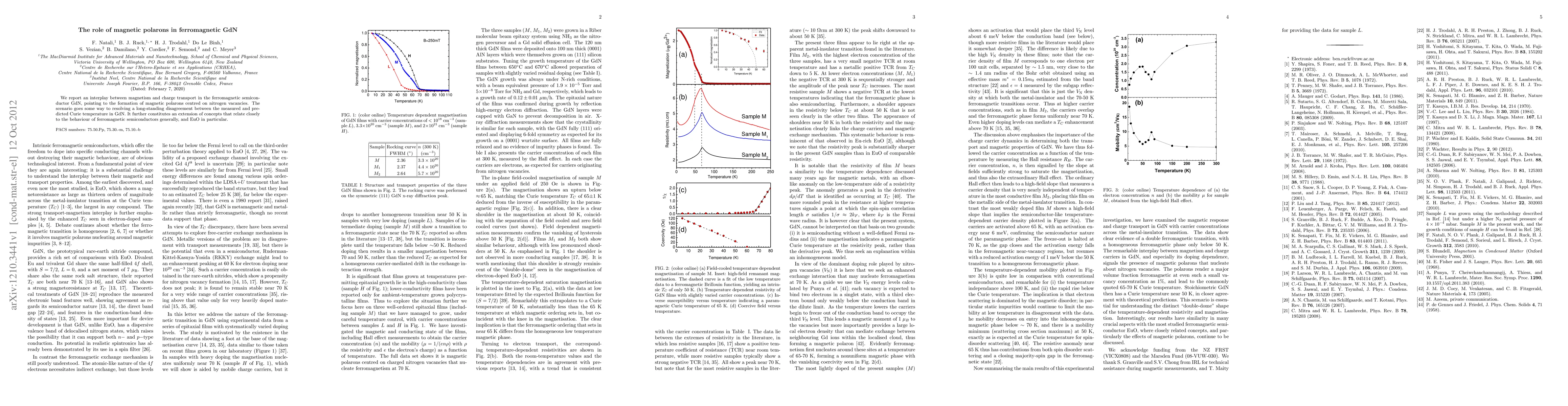 This study explores the relationship between magnetism and charge transport in ferromagnetic GdN, identifying the formation of magnetic polarons around nitrogen vacancies. This finding helps resolve discrepancies in the Curie temperature measurements and extends understanding of ferromagnetic semiconductors, particularly in relation to EuO.