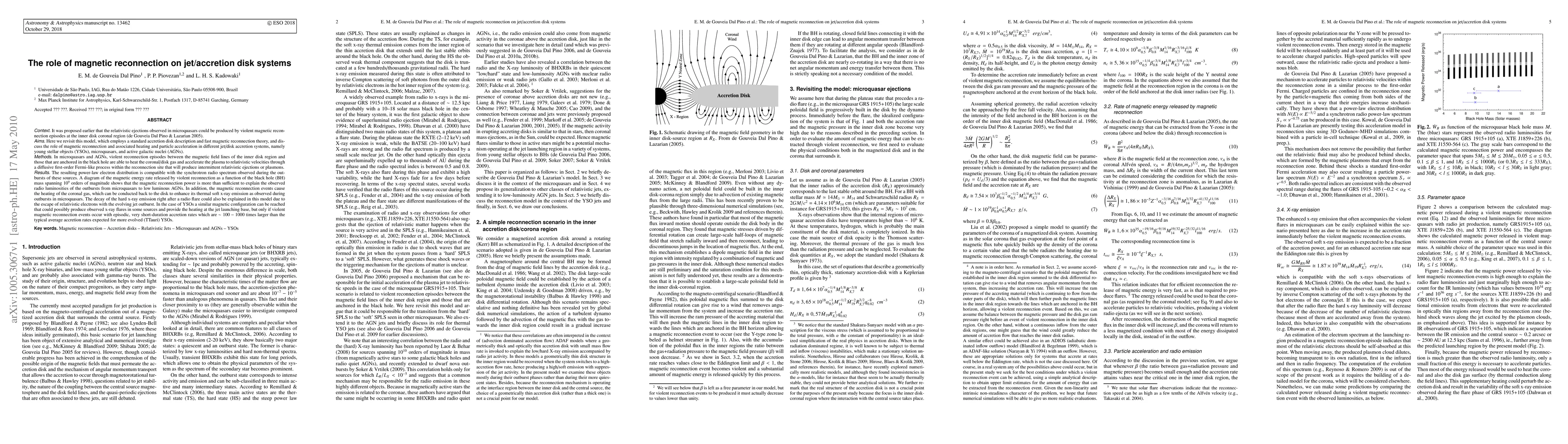 This paper explores how magnetic reconnection in the inner disk coronal region drives relativistic ejections in microquasars, young stellar objects, and active galactic nuclei, utilizing standard accretion disk models and reconnection theory to analyze associated heating and particle acceleration.