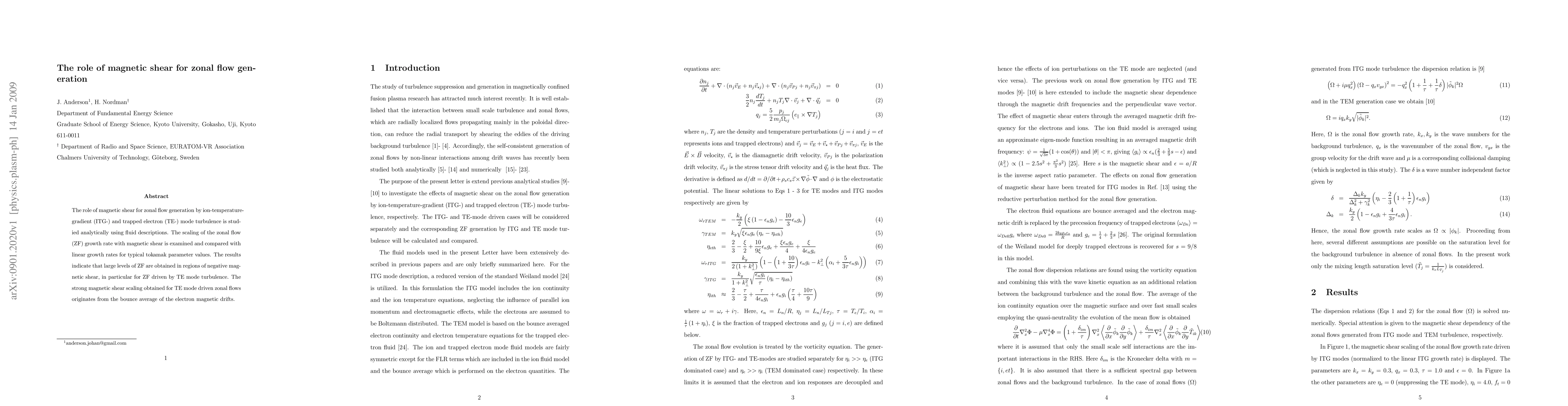 The role of magnetic shear for zonal flow generation by ion-temperature-gradient (ITG-) and trapped electron (TE-) mode turbulence is studied analytically using fluid descriptions. The scaling of the zonal flow (ZF) growth rate with magnetic shear is examined and compared with linear growth rates for typical tokamak parameter values. The results indicate that large levels of ZF are obtained in regions of negative magnetic shear, in particular for ZF driven by TE mode turbulence. The strong magnetic shear scaling obtained for TE mode driven zonal flows originates from the bounce average of the electron magnetic drifts.