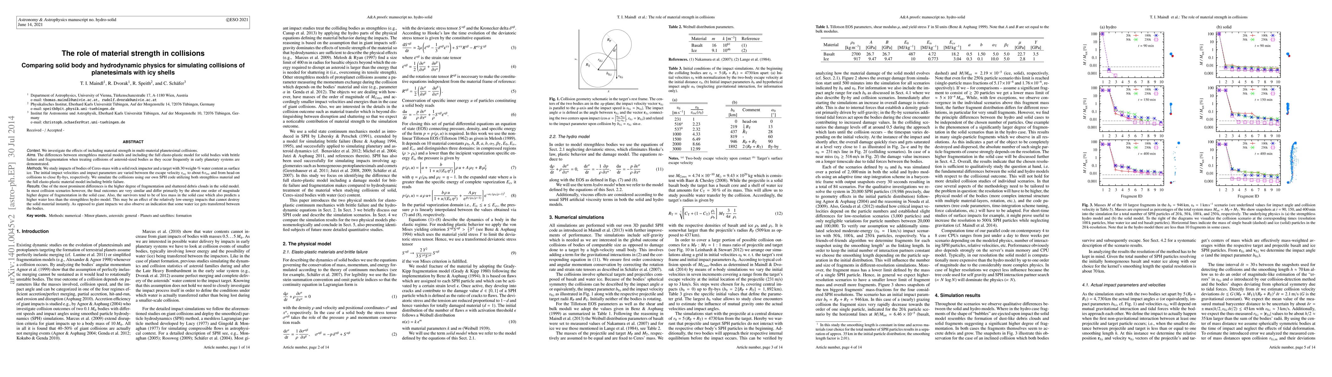 Context. We investigate the effects of including material strength in multi-material planetesimal collisions. Aims. The differences between strengthless material models and including the full elasto-plastic model for solid bodies with brittle failure and fragmentation when treating collisions of asteroid-sized bodies as they occur frequently in early planetary systems are demonstrated. Methods. We study impacts of bodies of Ceres-mass with a solid rock impactor and a target with 30 weight-% water content as surface ice.} The initial impact velocities and impact parameters are varied between the escape velocity $v_\mathrm{esc}$ to about 6 $v_\mathrm{esc}$ and from head-on collisions to close fly-bys, respectively. We simulate the collisions using our own SPH code utilizing both strengthless material and the full elasto-plastic material model including brittle failure. Results. One of the most prominent differences is the higher degree of fragmentation and shattered debris clouds in the solid model. In most collision scenarios however, the final outcomes are very similar and differ primarily by the about one order of magnitude higher degree of fragmentation in the solid case. Also, the survivors tend to be of less mass in the solid case which also predicts a higher water loss than the strengthless hydro model. This may be an effect of the relatively low-energy impacts that cannot destroy the solid material instantly. As opposed to giant impacts we also observe an indication that some water ice gets transferred between the bodies.