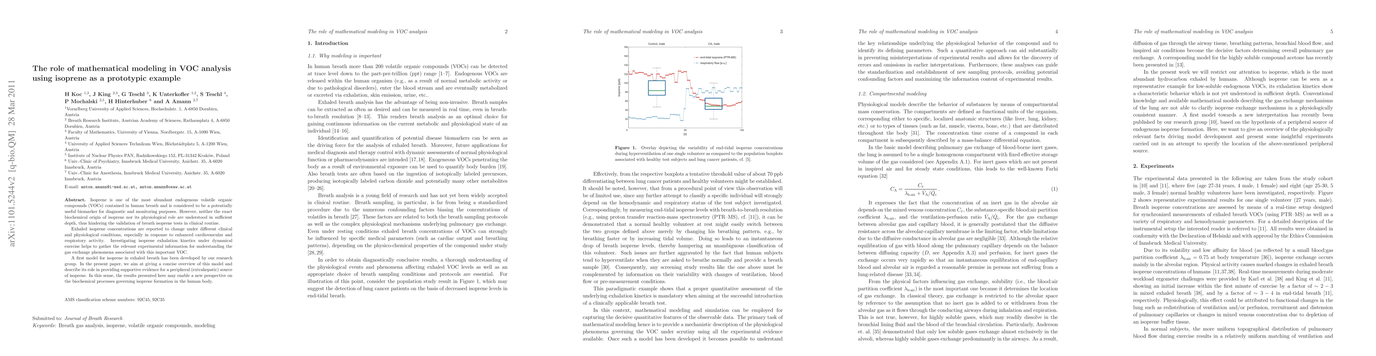 This paper presents a mathematical model for analyzing isoprene in exhaled breath, aiming to elucidate its biochemical origins and physiological roles, which are currently poorly understood. The model suggests a peripheral source of isoprene, potentially offering new insights into the biochemical processes involved.