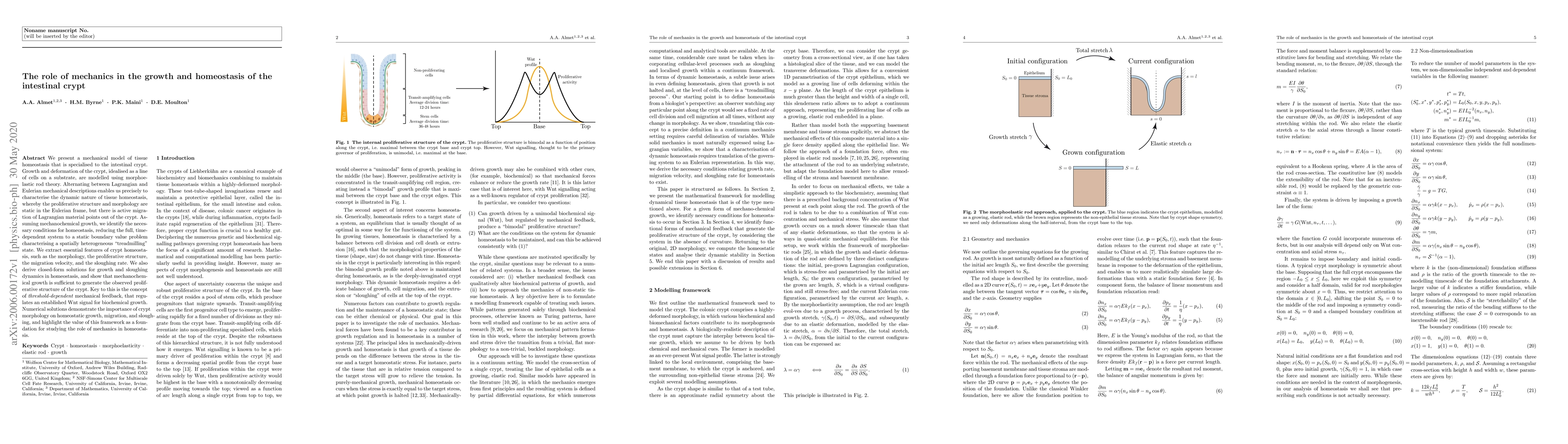 This paper develops a mechanical model using morphoelastic rod theory to describe the growth and homeostasis of the intestinal crypt, identifying conditions for homeostasis through mechanochemical growth and demonstrating the importance of crypt morphology on tissue dynamics.