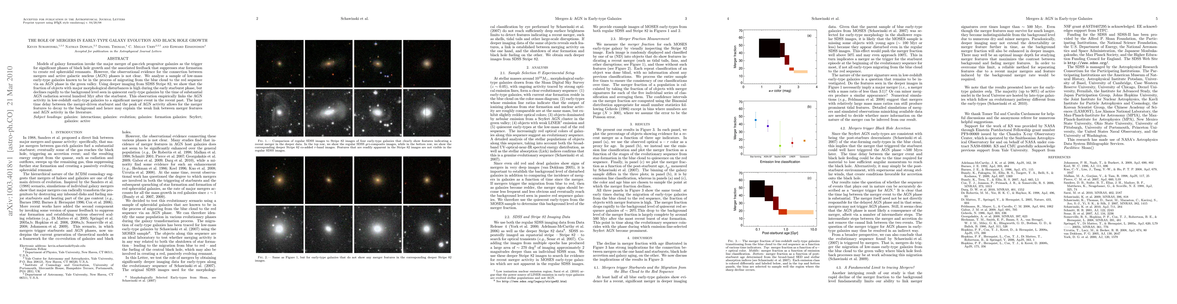 The study finds that major galaxy mergers trigger starbursts and subsequent black hole growth in early-type galaxies, but merger signs fade before peak AGN activity. This explains the weak observed link between mergers and active galactic nuclei in mature galaxies.