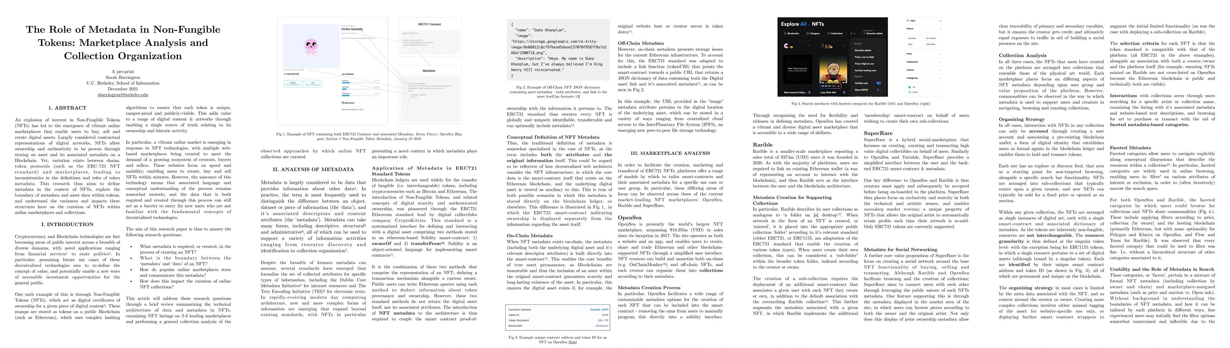 This paper explores the role of metadata in Non-Fungible Tokens (NFTs), analyzing how metadata definitions and structures affect the organization and curation of NFTs in online marketplaces and collections. It aims to clarify the differences in metadata roles across various blockchains, token protocols, and marketplaces.