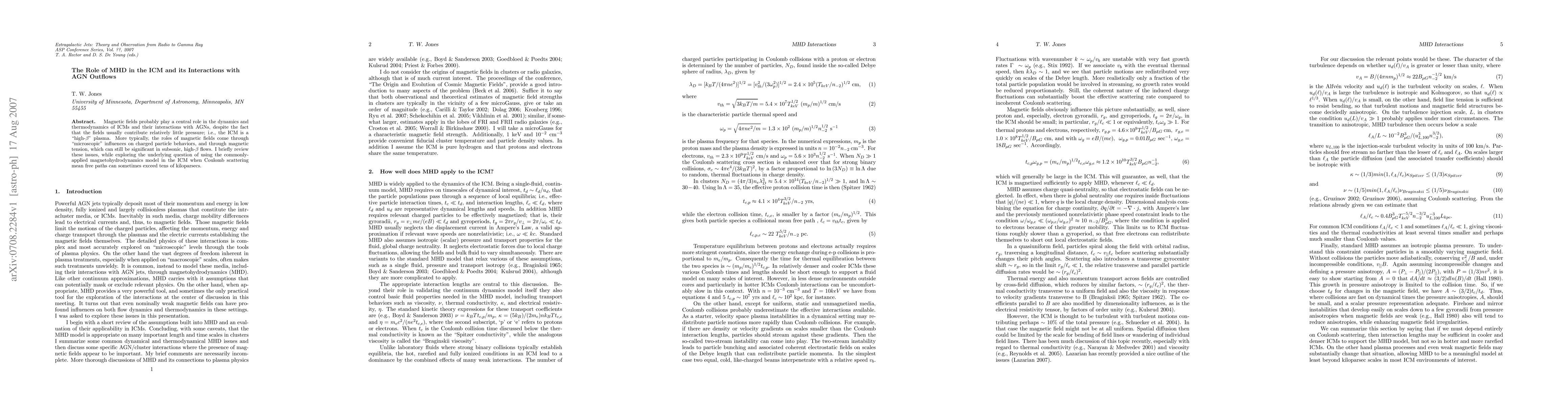Magnetic fields probably play a central role in the dynamics and thermodynamics of ICMs and their interactions with AGNs, despite the fact that the fields usually contribute relatively little pressure; i.e., the ICM is a ``high-$\beta$'' plasma. More typically, the roles of magnetic fields come through ``microscopic'' influences on charged particle behaviors, and through magnetic tension, which can still be significant in subsonic, high-$\beta$ flows. I briefly review these issues, while exploring the underlying question of using the commonly-applied magnetohydrodynamics model in the ICM when Coulomb scattering mean free paths can sometimes exceed tens of kiloparsecs.