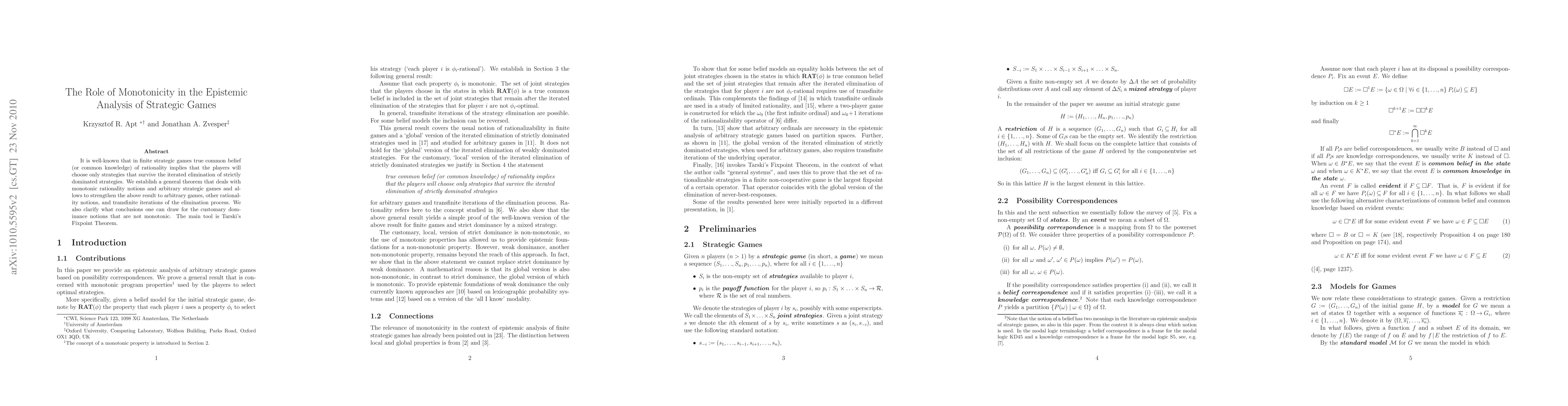 This paper establishes a theorem linking monotonic rationality notions to the iterated elimination of strictly dominated strategies in strategic games, extending the result to arbitrary games and transfinite iterations, and utilizes Tarski's Fixpoint Theorem as the main analytical tool. It also discusses implications for non-monotonic dominance notions.