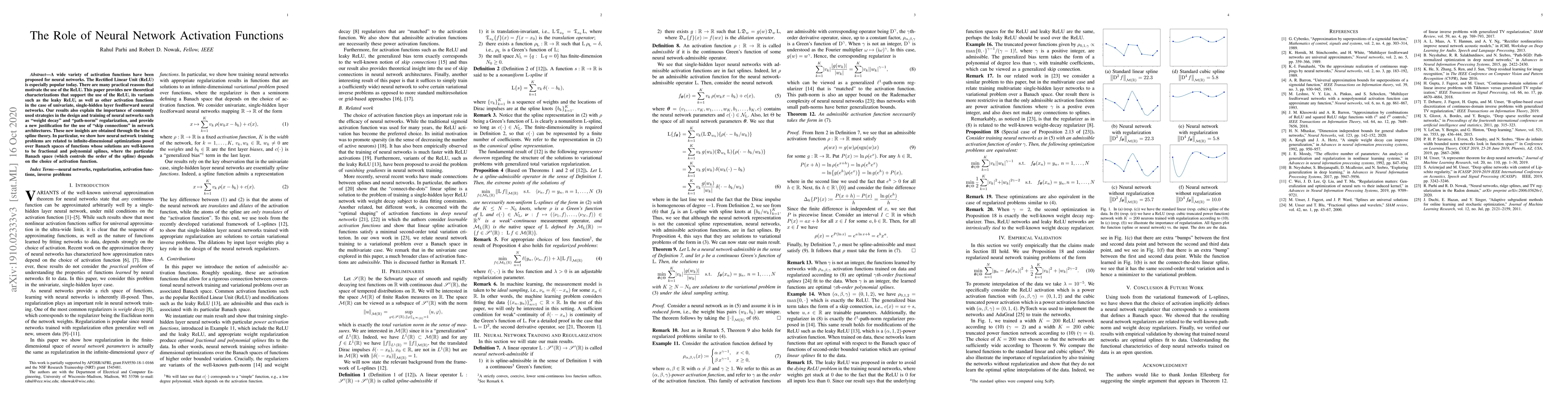 This paper explores the theoretical underpinnings of various neural network activation functions, particularly the ReLU and its variants, using spline theory. It provides new insights into the effectiveness of these functions and justifies strategies like weight decay and skip connections in neural network design.