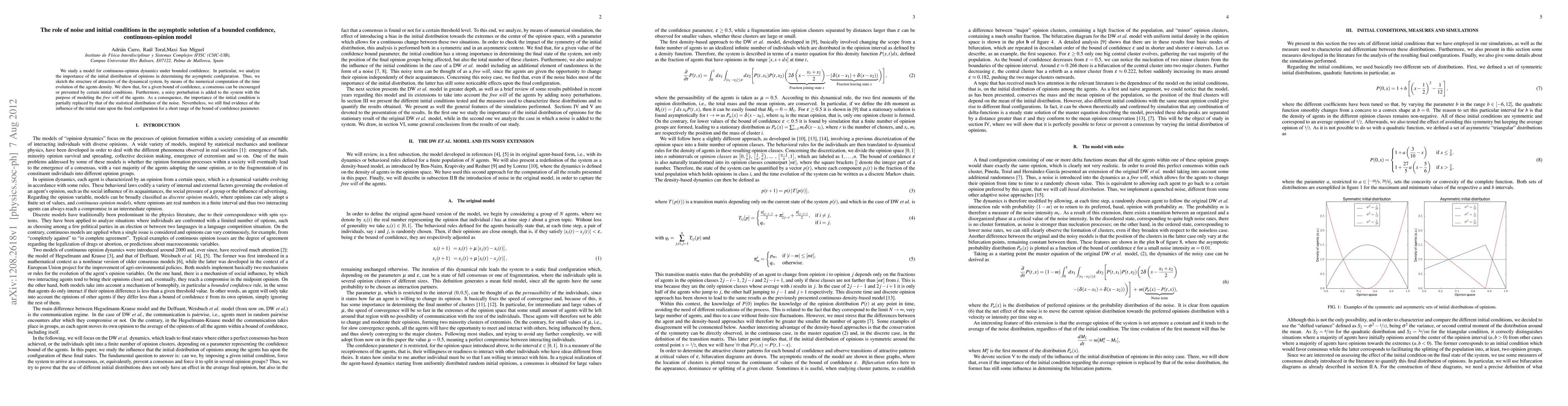 We study a model for continuous-opinion dynamics under bounded confidence. In particular, we analyze the importance of the initial distribution of opinions in determining the asymptotic configuration. Thus, we sketch the structure of attractors of the dynamical system, by means of the numerical computation of the time evolution of the agents density. We show that, for a given bound of confidence, a consensus can be encouraged or prevented by certain initial conditions. Furthermore, a noisy perturbation is added to the system with the purpose of modeling the free will of the agents. As a consequence, the importance of the initial condition is partially replaced by that of the statistical distribution of the noise. Nevertheless, we still find evidence of the influence of the initial state upon the final configuration for a short range of the bound of confidence parameter.