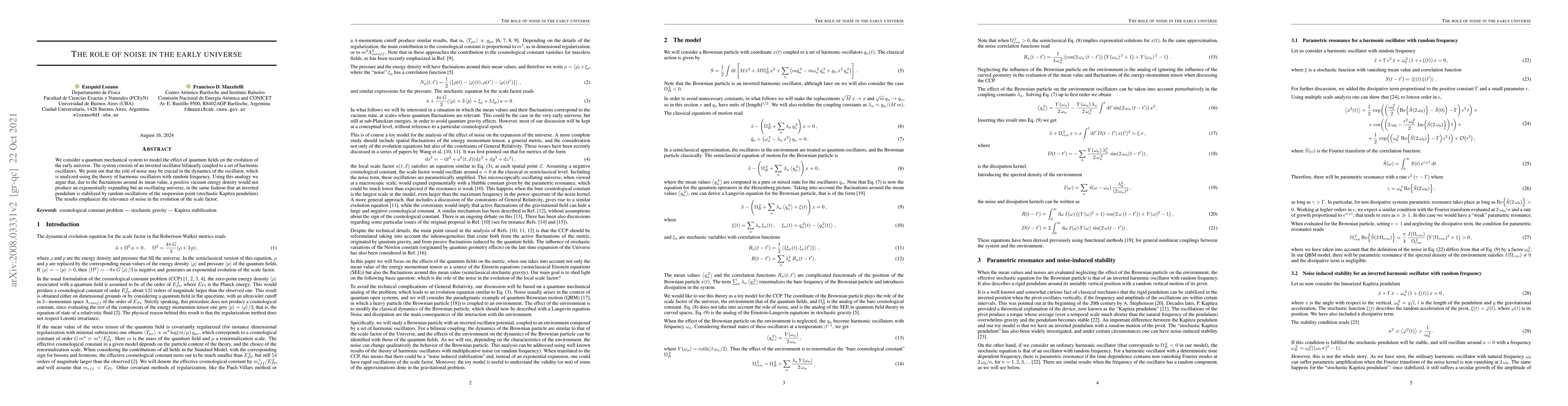 This paper models the early universe using quantum mechanics, focusing on the role of noise in the dynamics of an inverted oscillator. It suggests that fluctuations, akin to a stochastic Kapitza pendulum, could lead to an oscillating universe rather than exponential expansion, highlighting the importance of noise in the universe's evolution.