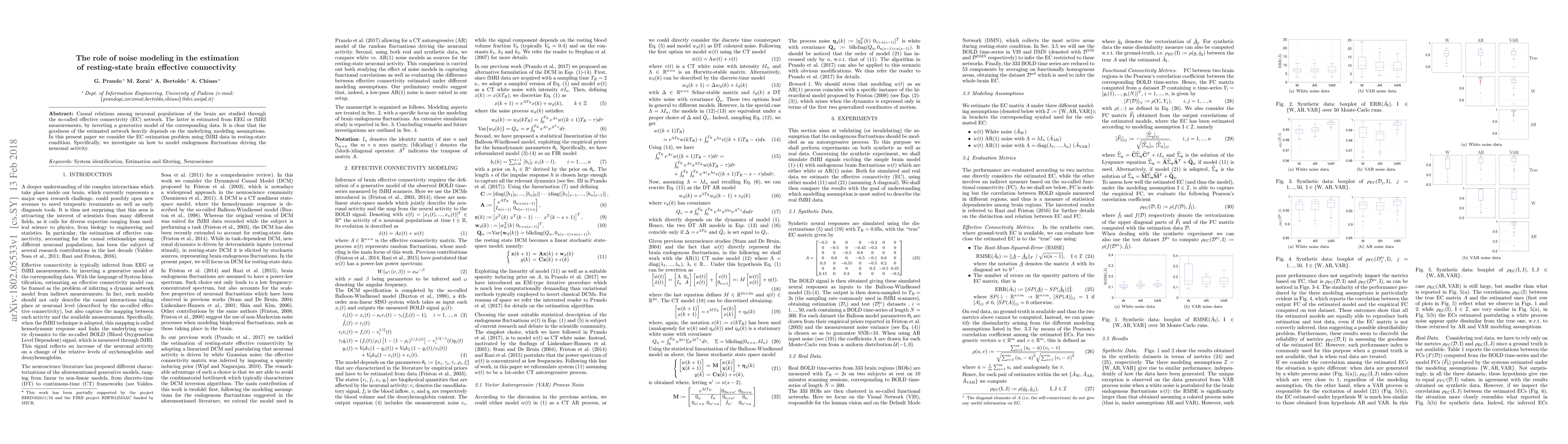 Causal relations among neuronal populations of the brain are studied through the so-called effective connectivity (EC) network. The latter is estimated from EEG or fMRI measurements, by inverting a generative model of the corresponding data. It is clear that the goodness of the estimated network heavily depends on the underlying modeling assumptions. In this present paper we consider the EC estimation problem using fMRI data in resting-state condition. Specifically, we investigate on how to model endogenous fluctuations driving the neuronal activity.