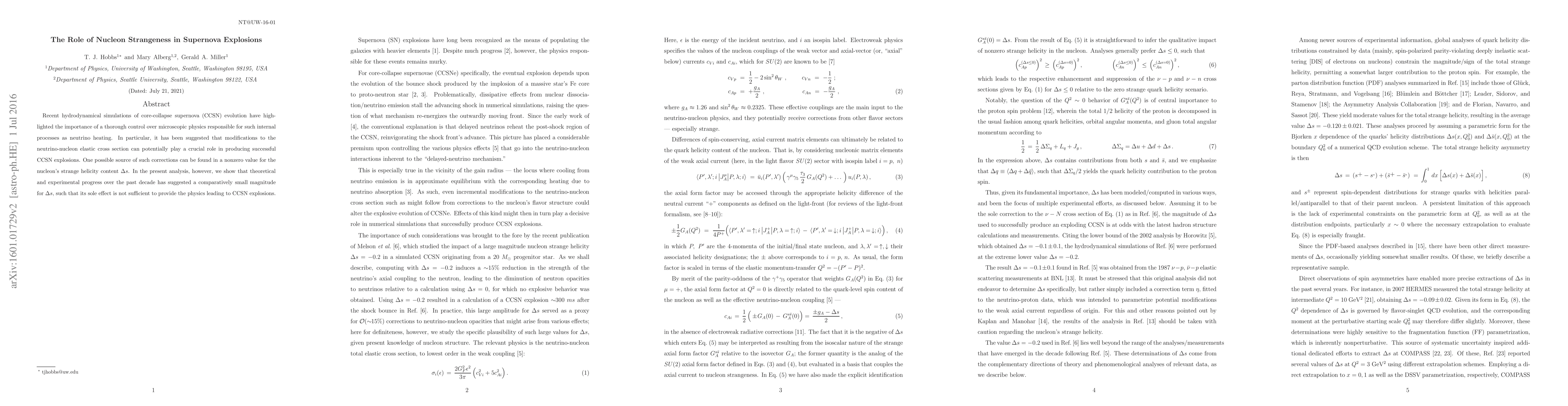 Researchers found that modifications to nucleon strangeness due to strange helicity content do not significantly impact supernova explosions, contrary to previous suggestions.