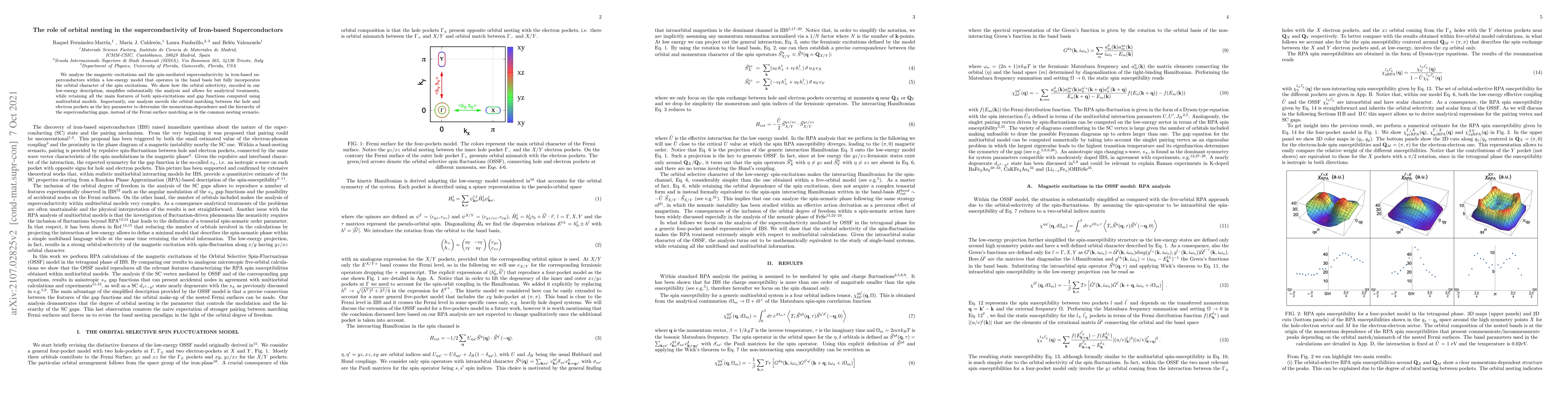 We analyze the magnetic excitations and the spin-mediated superconductivity in iron-based superconductors within a low-energy model that operates in the band basis but fully incorporates the orbital character of the spin excitations. We show how the orbital selectivity, encoded in our low-energy description, simplifies substantially the analysis and allows for analytical treatments, while retaining all the main features of both spin-excitations and gap functions computed using multiorbital models. Importantly, our analysis unveils the orbital matching between the hole and electron pockets as the key parameter to determine the momentum-dependence and the hierarchy of the superconducting gaps, instead of the Fermi surface matching as in the common nesting scenario.