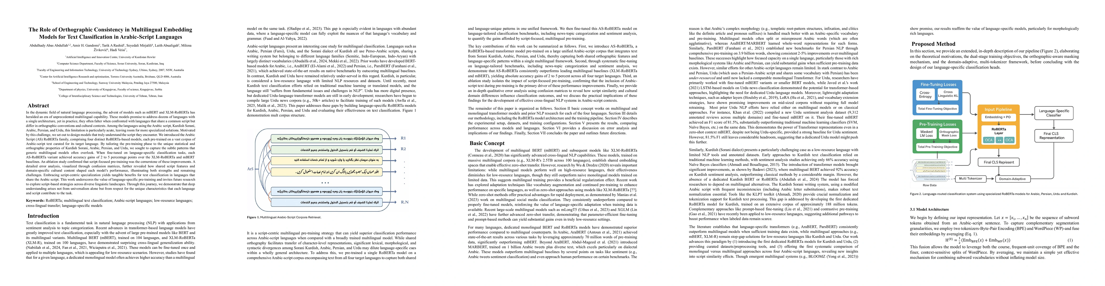 In natural language processing, multilingual models like mBERT and XLM-RoBERTa promise broad coverage but often struggle with languages that share a script yet differ in orthographic norms and cultural context. This issue is especially notable in Arabic-script languages such as Kurdish Sorani, Arabic, Persian, and Urdu. We introduce the Arabic Script RoBERTa (AS-RoBERTa) family: four RoBERTa-based models, each pre-trained on a large corpus tailored to its specific language. By focusing pre-training on language-specific script features and statistics, our models capture patterns overlooked by general-purpose models. When fine-tuned on classification tasks, AS-RoBERTa variants outperform mBERT and XLM-RoBERTa by 2 to 5 percentage points. An ablation study confirms that script-focused pre-training is central to these gains. Error analysis using confusion matrices shows how shared script traits and domain-specific content affect performance. Our results highlight the value of script-aware specialization for languages using the Arabic script and support further work on pre-training strategies rooted in script and language specificity.