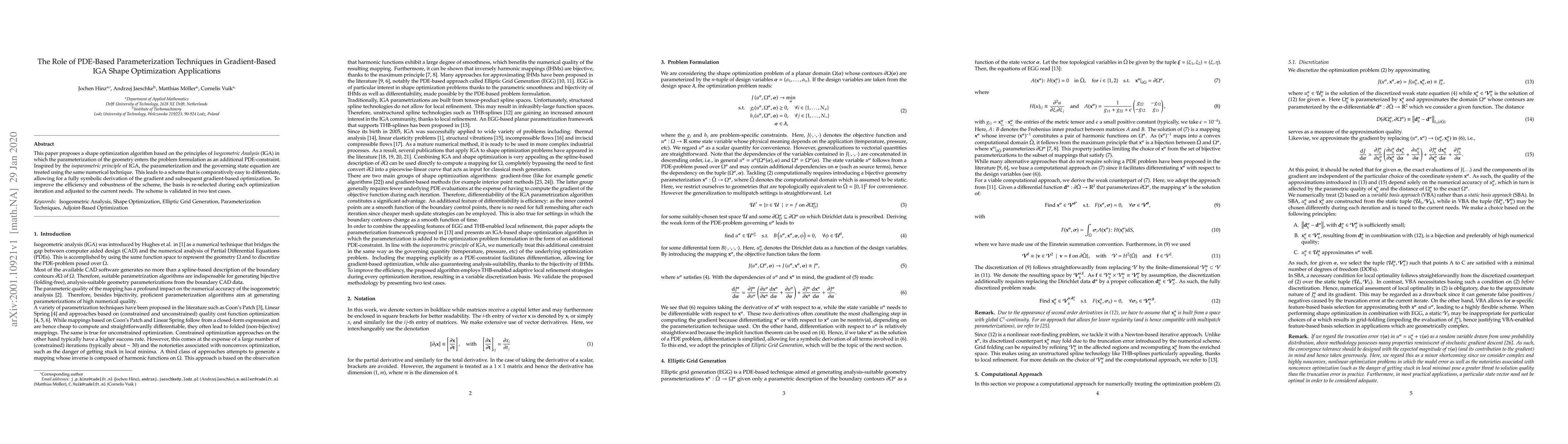This paper proposes a shape optimization algorithm that combines Isogeometric Analysis with parameterization techniques to improve efficiency and robustness in gradient-based optimization.