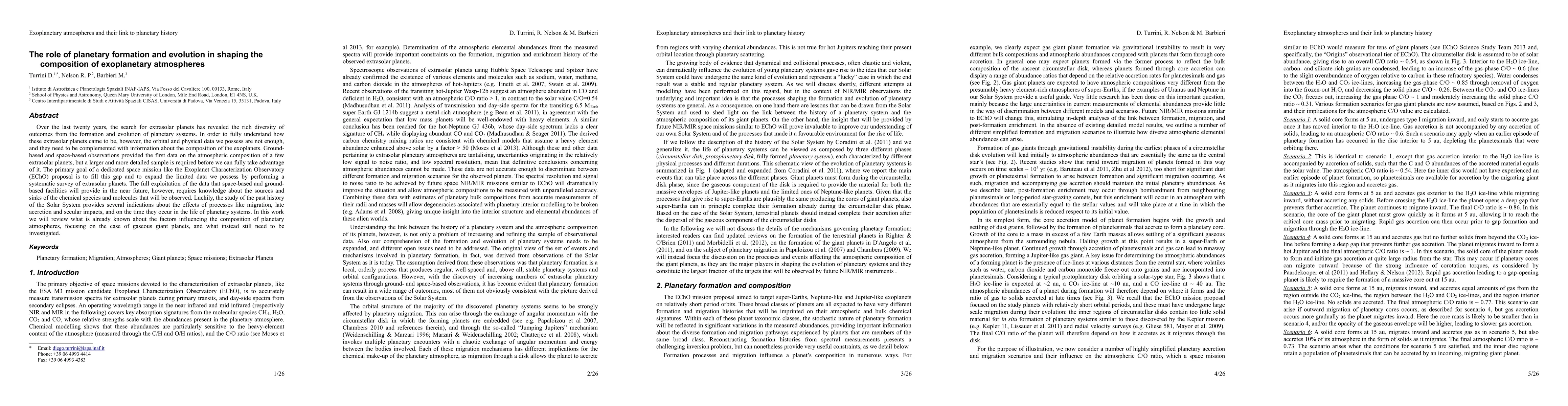 Over the last twenty years, the search for extrasolar planets revealed us the rich diversity of the outcomes of the formation and evolution of planetary systems. In order to fully understand how these extrasolar planets came to be, however, the orbital and physical data we possess are not enough, and they need to be complemented with information on the composition of the exoplanets. Ground-based and space-based observations provided the first data on the atmospheric composition of a few extrasolar planets, but a larger and more detailed sample is required before we can fully take advantage of it. The primary goal of the Exoplanet Characterization Observatory (EChO) is to fill this gap, expanding the limited data we possess by performing a systematic survey of hundreds of extrasolar planets. The full exploitation of the data that EChO and other space-based and ground-based facilities will provide in the near future, however, requires the knowledge of what are the sources and sinks of the chemical species and molecules that will be observed. Luckily, the study of the past history of the Solar System provides several indications on the effects of processes like migration, late accretion and secular impacts, and on the time they occur in the life of planetary systems. In this work we will review what is already known about the factors influencing the composition of planetary atmospheres, focusing on the case of gaseous giant planets, and what instead still need to be investigated.