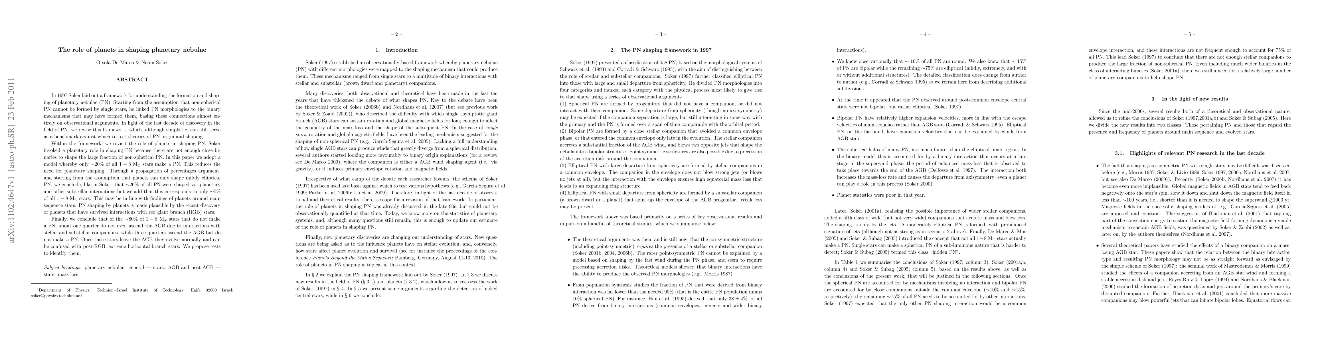 This paper revises the framework for understanding planetary nebulae (PN) formation, suggesting that only ~20% of 1-8 solar mass stars create PN, reducing the need for planetary shaping. It concludes that ~20% of PN are shaped by planetary interactions, corresponding to ~5% of all such stars, and proposes tests to identify stars that evolve normally post-AGB.