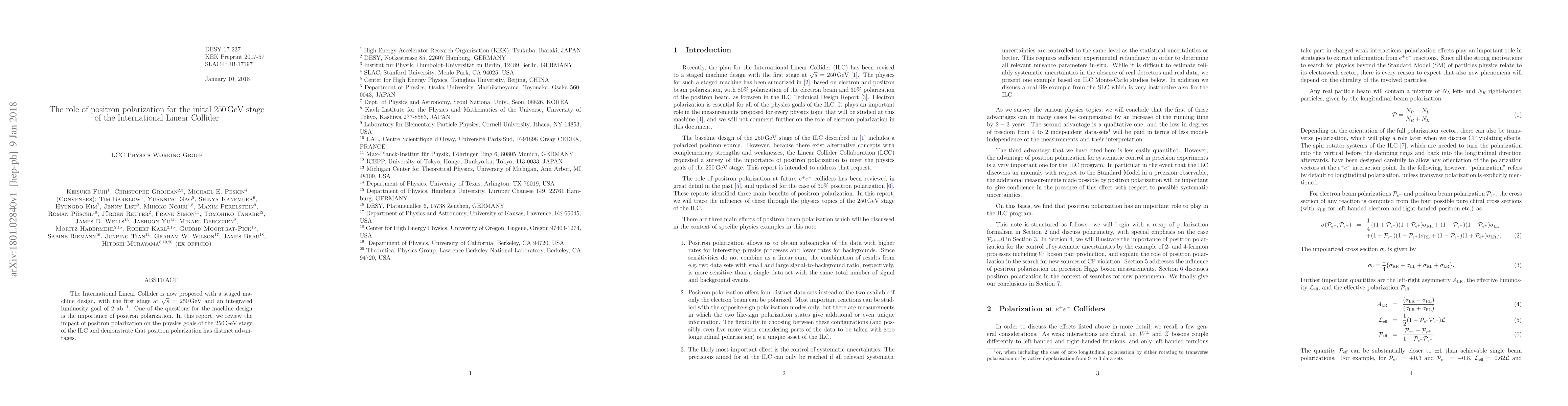 Summary: This paper examines the significance of positron polarization for the initial 250 GeV stage of the International Linear Collider (ILC), demonstrating that polarized positrons enhance the collider's ability to achieve its physics goals.