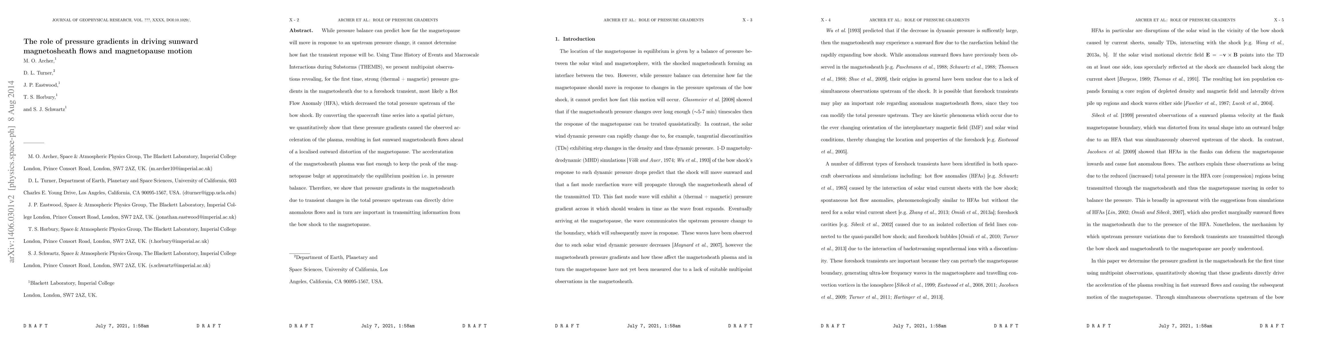 This paper demonstrates that pressure gradients in the magnetosheath, caused by a transient decrease in upstream pressure likely from a Hot Flow Anomaly, drive rapid sunward flows and localized magnetopause motion. These gradients maintain the magnetopause bulge at equilibrium despite the transient changes.