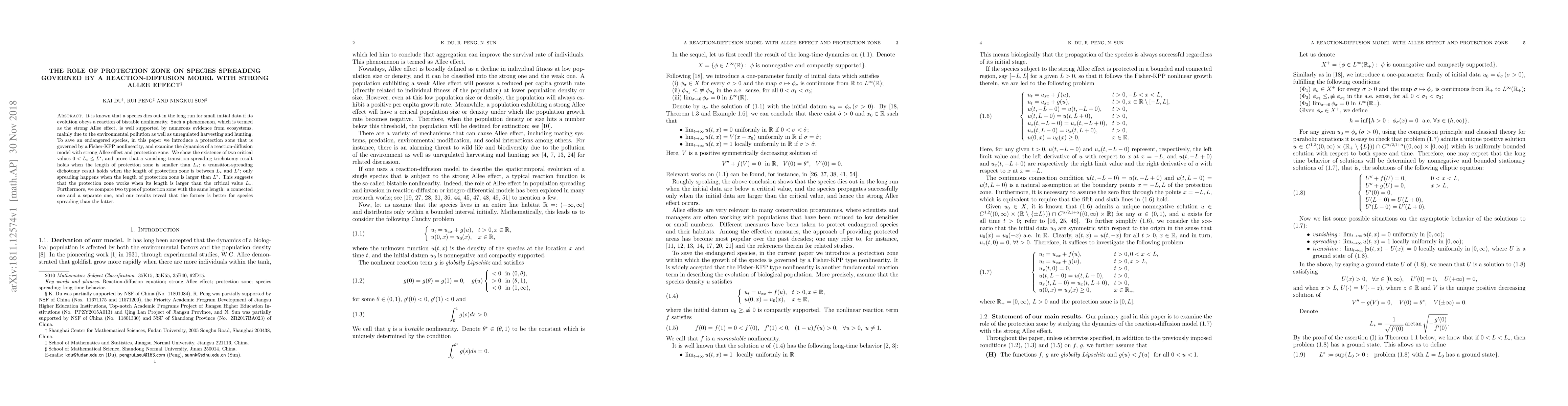strong Allee effect and protection zone. We show the existence of two critical