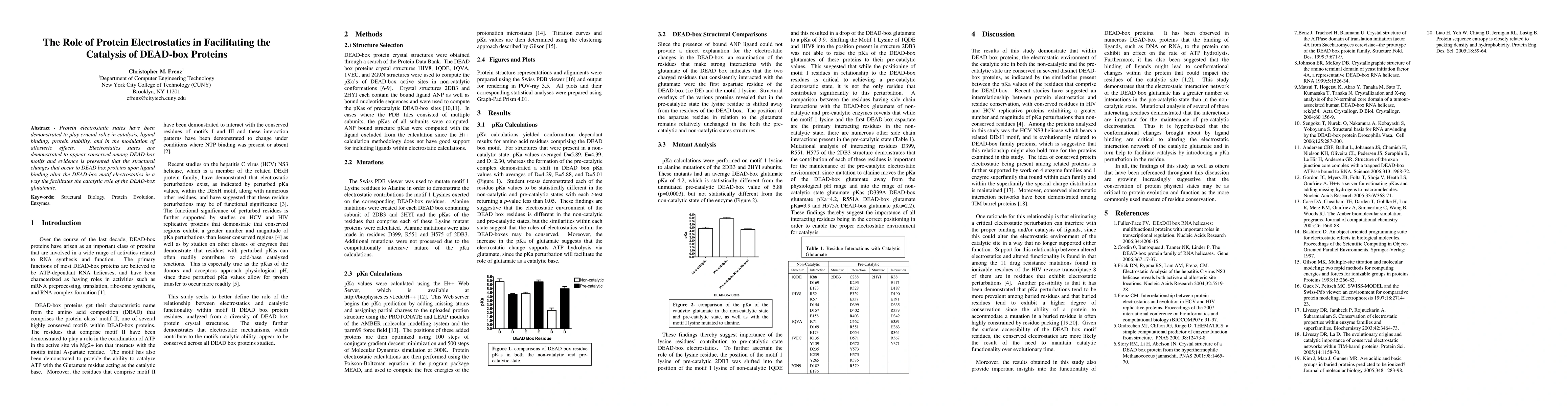 This research paper explores how protein electrostatics facilitate the catalysis of DEAD-box proteins, finding that ligand binding alters electrostatic states to enable catalytic activity.