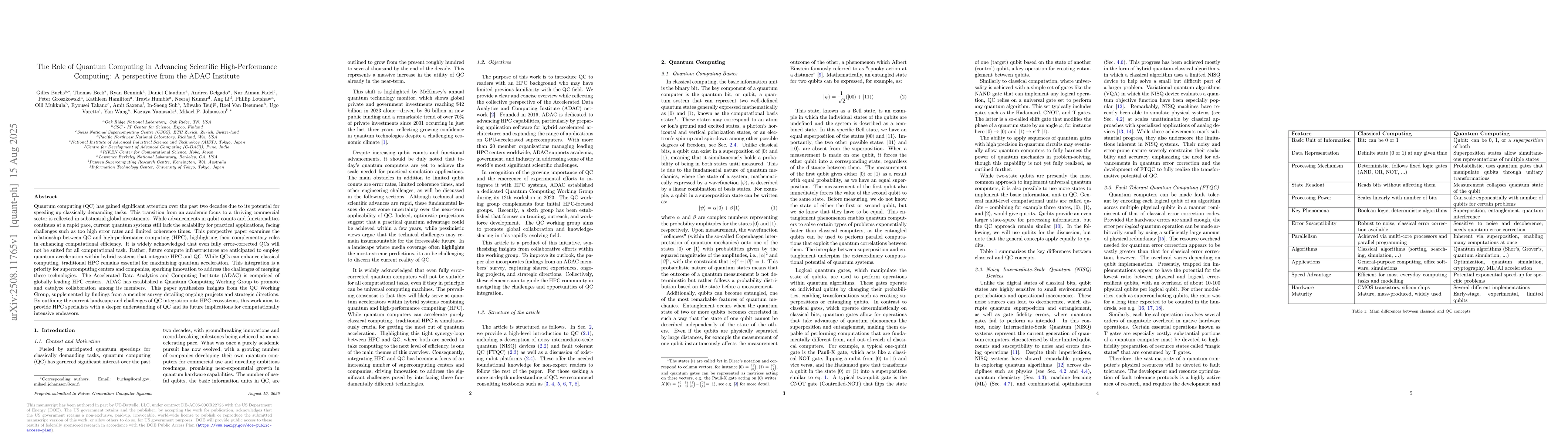 The paper presents a perspective from the ADAC Institute on the role of quantum computing (QC) in advancing scientific high-performance computing (HPC), highlighting their complementary roles and the need for hybrid systems.