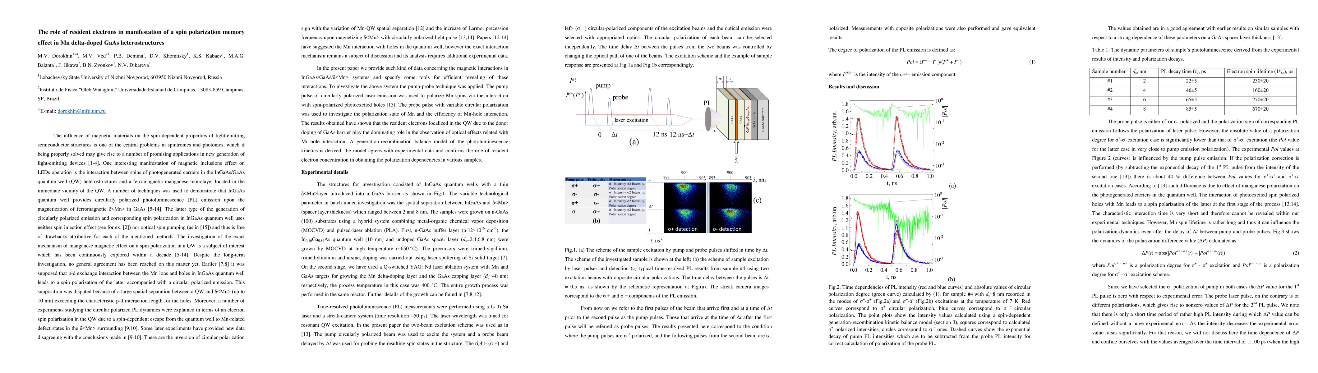This paper investigates the spin-memory effect in Mn delta-doped GaAs heterostructures, showing that resident electron concentration in the quantum well significantly influences the spin polarization degree of Mn atoms, thereby affecting the $\delta P$ effect. The findings suggest a new method for measuring the spin relaxation time in such nanostructures.