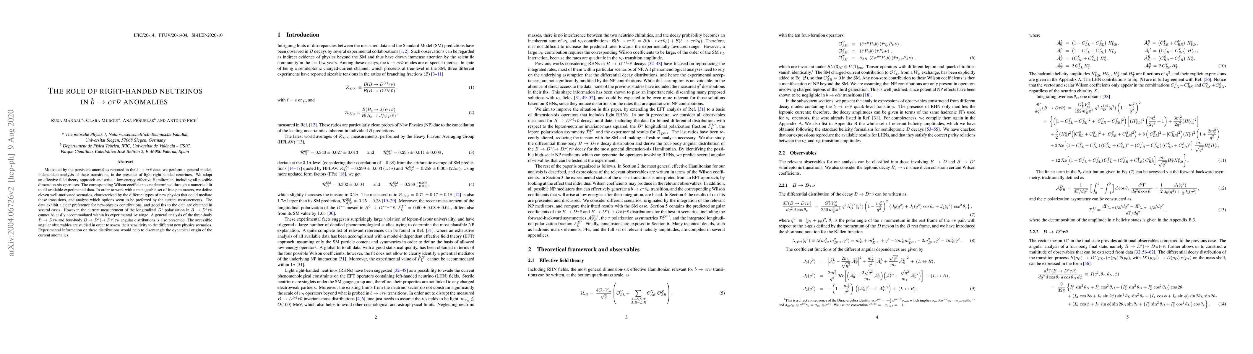 This paper investigates the potential role of light right-handed neutrinos in explaining the anomalies observed in $b\to c\tau\bar{\nu}$ transitions using an effective field theory approach. The analysis finds several new physics scenarios that fit the data well, but struggles to accommodate current measurements of the longitudinal $D^*$ polarization.