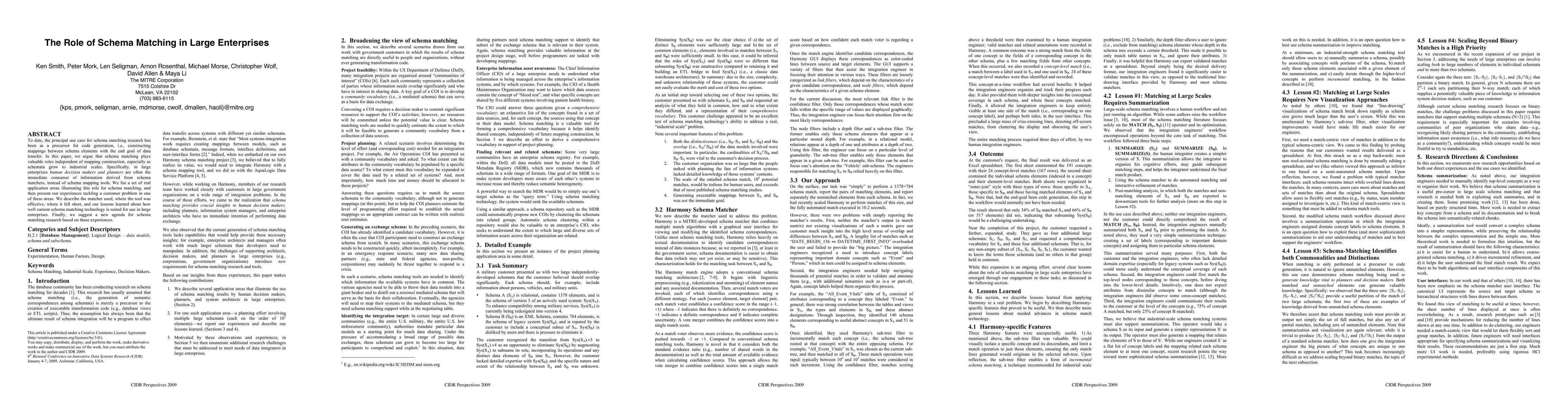 This paper explores the significance of schema matching beyond code generation, highlighting its critical role in large enterprises where human decision makers rely on schema matchers directly. The authors present real-world applications and lessons learned from a customer problem, suggesting a new research agenda for schema matching technology.