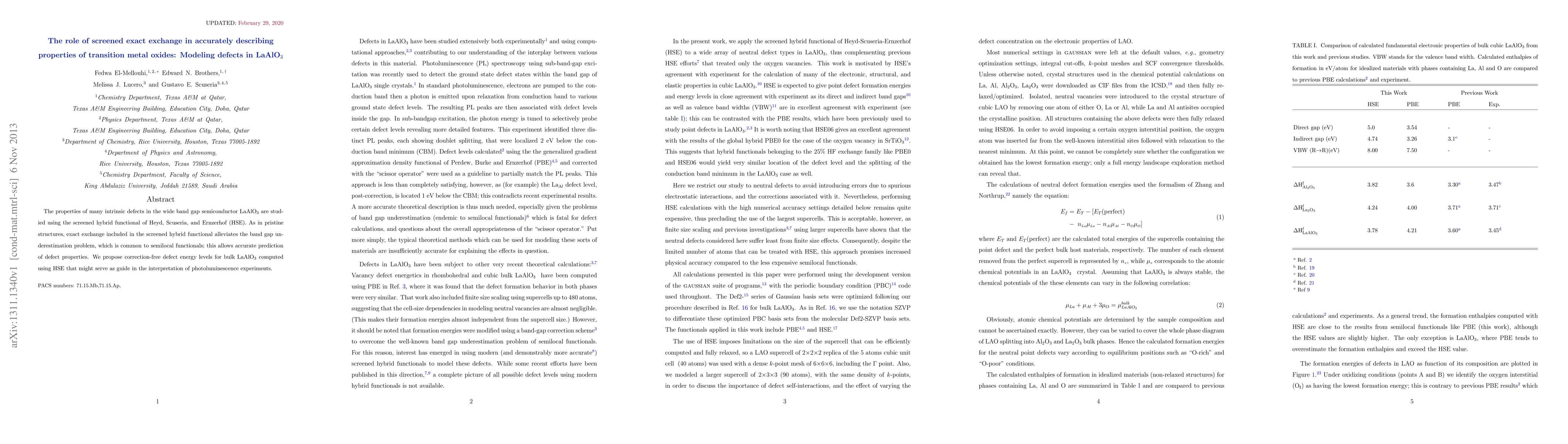 This study investigates intrinsic defects in LaAlO3 using the screened hybrid functional HSE, demonstrating that exact exchange helps correct the band gap underestimation issue, leading to accurate predictions of defect properties and proposing HSE-computed defect energy levels for potential use in photoluminescence experiments.