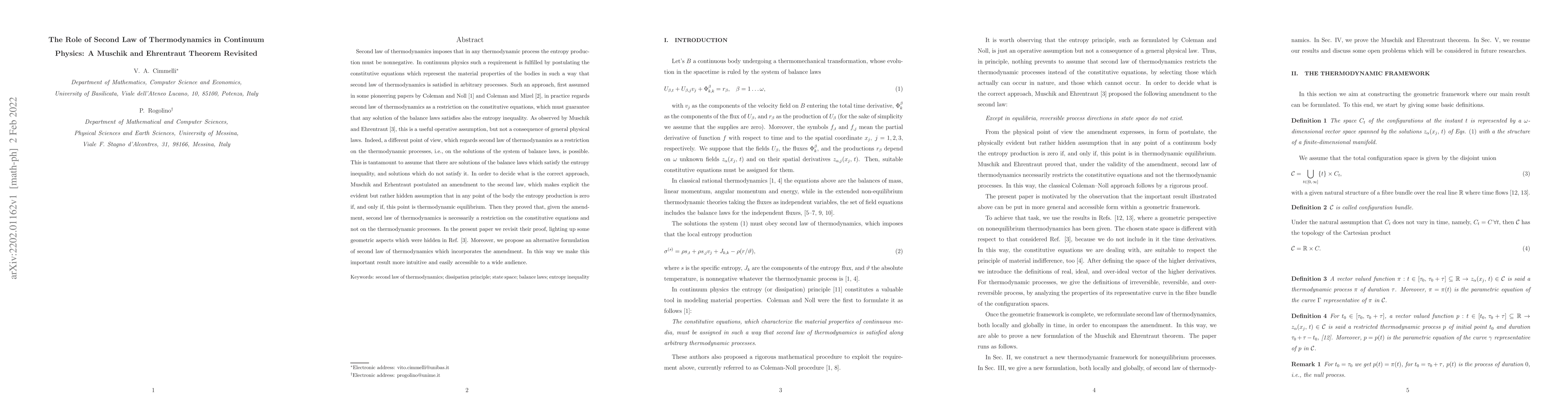 This paper revisits the Muschik and Ehrentraut theorem on the role of the second law of thermodynamics in continuum physics, highlighting the geometric aspects of their proof and proposing an alternative formulation that incorporates their amendment to clarify the distinction between restrictions on constitutive equations versus thermodynamic processes.