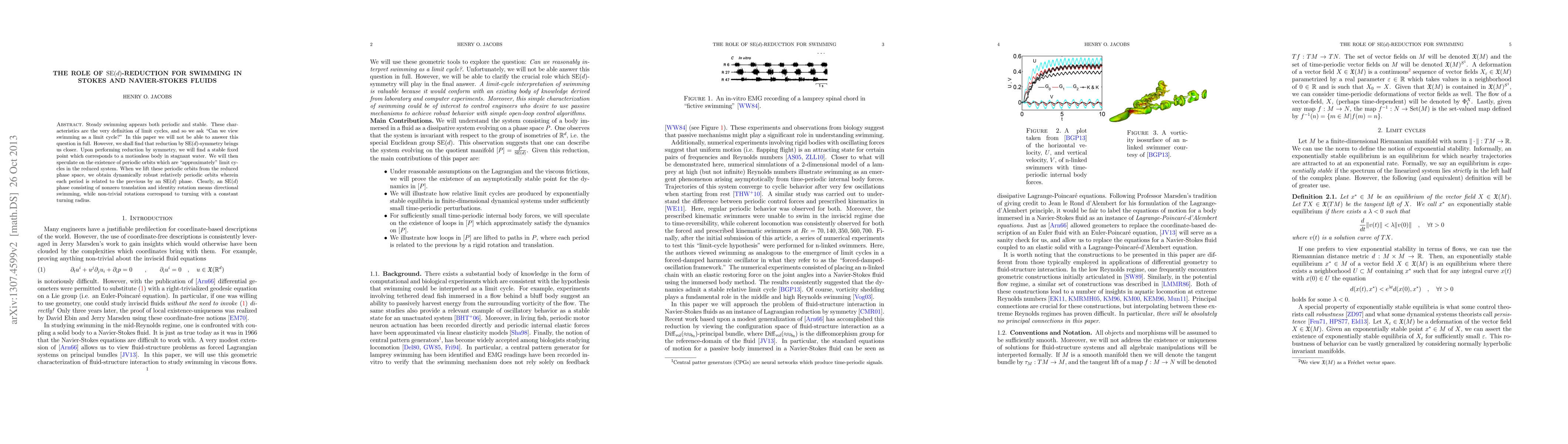 Steady swimming appears both periodic and stable. These characteristics are the very definition of limit cycles, and so we ask "Can we view swimming as a limit cycle?" In this paper we will not be able to answer this question in full. However, we shall find that reduction by SE(d)-symmetry brings us closer. Upon performing reduction by symmetry, we will find a stable fixed point which corresponds to a motionless body in stagnant water. We will then speculate on the existence of periodic orbits which are "approximately" limit cycles in the reduced system. When we lift these periodic orbits from the reduced phase space, we obtain dynamically robust relatively periodic orbits wherein each period is related to the previous by an SE(d)-phase. Clearly, an SE(d) phase consisting of nonzero translation and identity rotation means directional swimming, while non-trivial rotations correspond to turning with a constant turning radius.