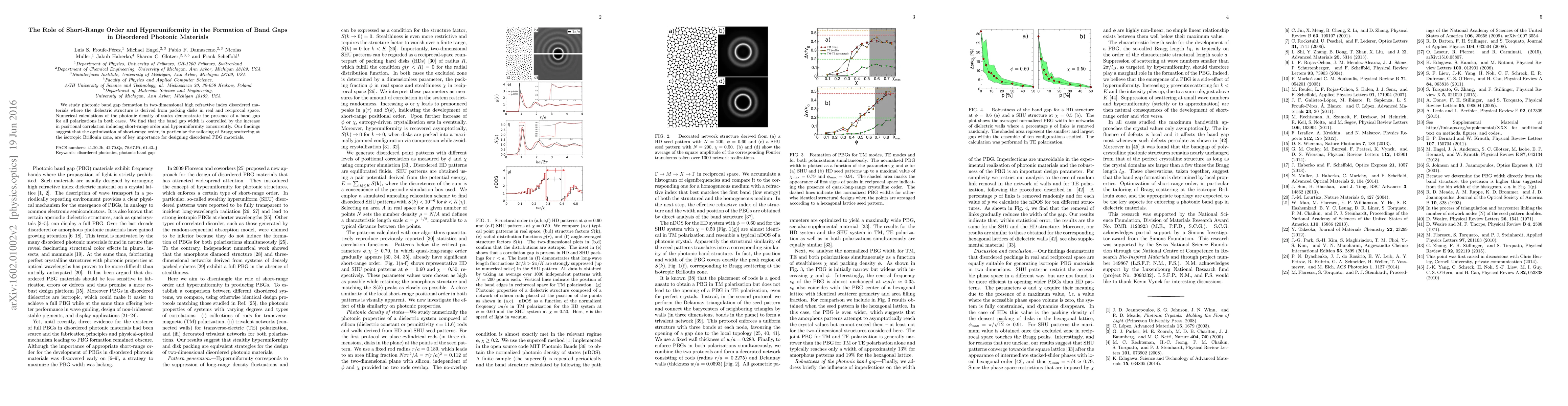 This paper investigates photonic band gap formation in disordered materials with high refractive index, showing that the band gap width is influenced by short-range order and hyperuniformity. Optimizing these factors, especially Bragg scattering, is crucial for designing effective disordered photonic band gap materials.