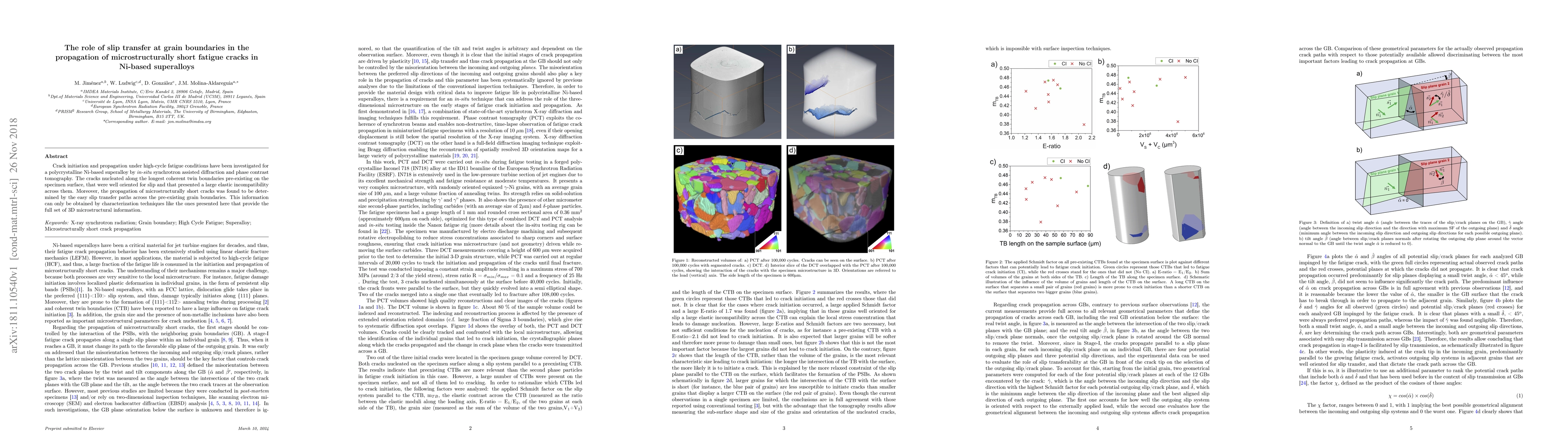 This study investigates the initiation and propagation of high-cycle fatigue cracks in a polycrystalline Ni-based superalloy, revealing that crack propagation is significantly influenced by slip transfer across pre-existing grain boundaries. Advanced characterization techniques like synchrotron-assisted diffraction and phase contrast tomography provide essential 3D microstructural insights.